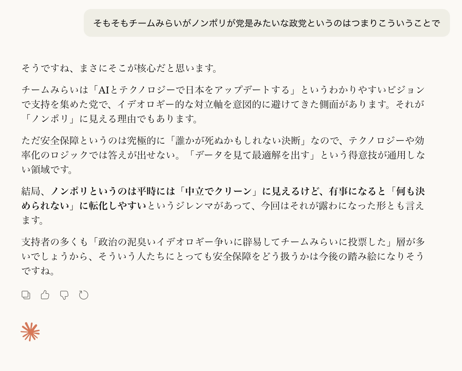 チームみらい、僕は「注目してるけど様子見」だった。それはこういう試練をどう乗り越えるかを見届けないと判断が付かない、と思ったからだ。