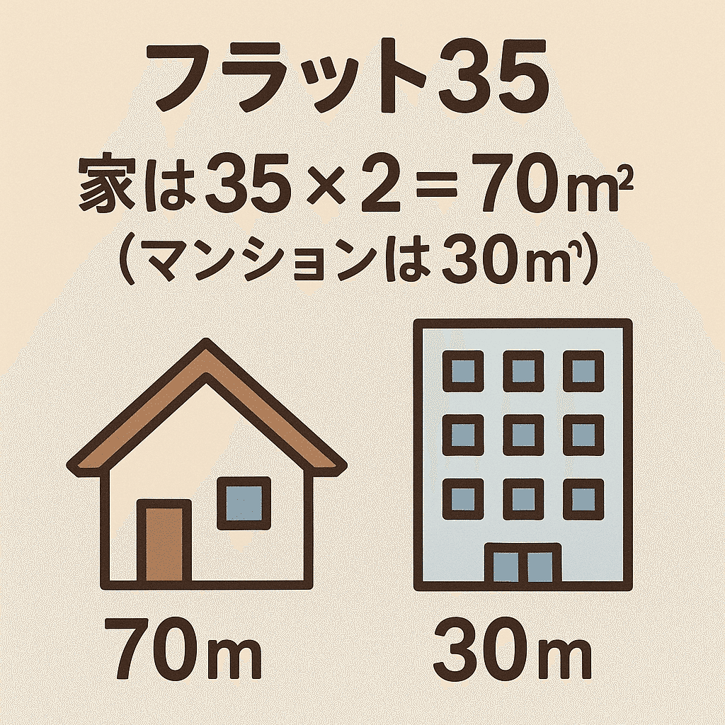 語呂:「家は35×2=70㎡(マンションは30㎡)」