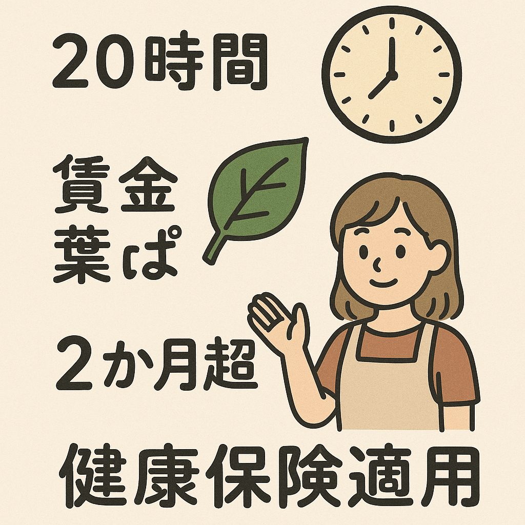 健康保険の適用範囲は、パートやアルバイトの短時間労働者にも拡大されています。この条件は社会保険適用拡大の基本です。