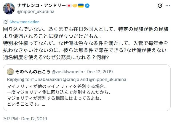 まさにナザレンコくんこそ上から目線で、多様性の否定し、排他主義で、原動力は不満と憎悪で、ダブスタの典型例なんですが、自覚はゼロのようですね。哀れですね。