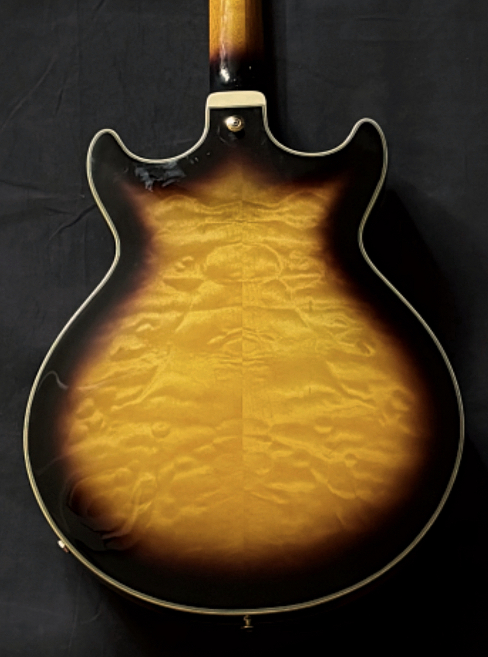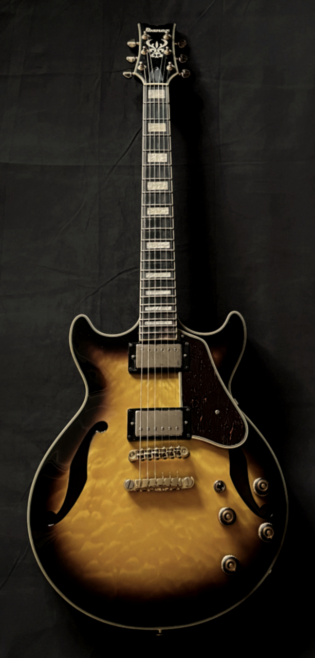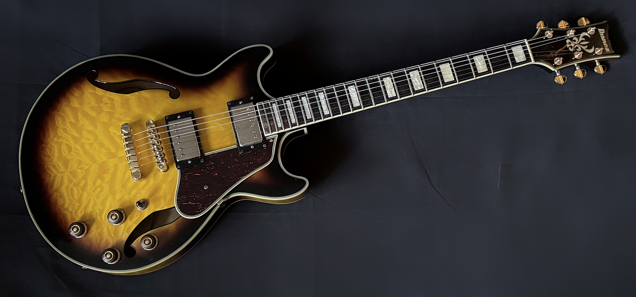 Ibanez AM93QMは、Artcore Expressionistシリーズの小ぶりなセミホロウ・エレキギターです。
