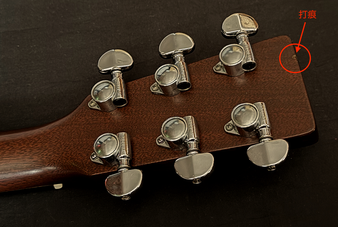 本器は、51年を経過しておりますので、使用感(細かい、小さい、目立つ傷:ヘッド裏画像参照ください、若干のフレットの減り)等は見られますが、全体的に質感もよく現状問題なくご使用いただけます。ナット、サドルは、牛骨に変更されております。当工房で、全体点検・全体調整済みです。