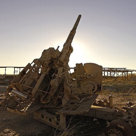 破壊された兵器を見るようなイランーイラク戦争のまっだ中に、