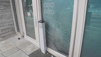 「ここはガラス張りの建物、具体的には国営テレビ局のニュース棟の入口のドアの一つです。4階の右側の構造は完全に崩壊し、左側はご覧の通り、完全に破壊されています。私たちの親愛なる同僚ニマ・ラジャブールも、この場所で重傷を負い殉職しました」