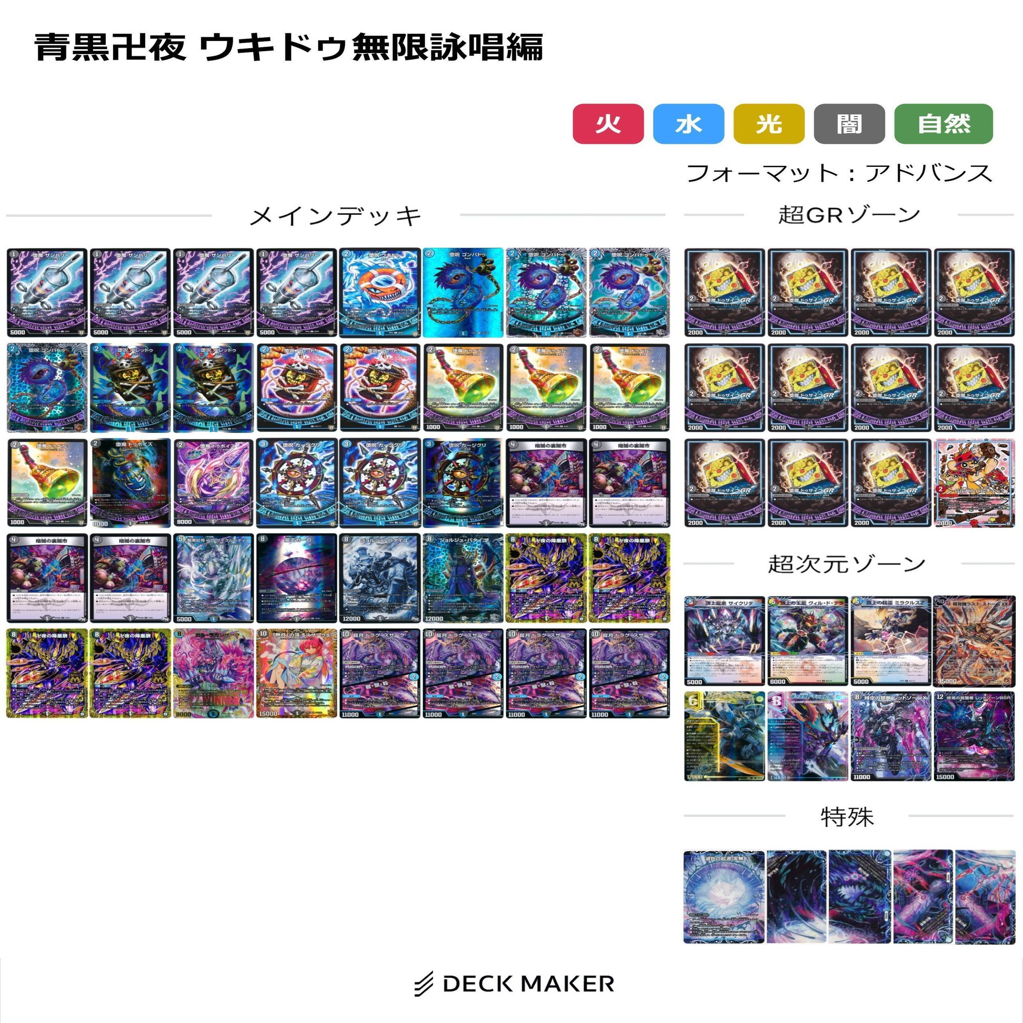オアナテハをループさせる方はありますが道中のチェインで圧倒的にサイクルペディアの方が強かったので結局戻りました。昨今の卍夜を取り巻く環境は向かい風と言わざるを得ません。要因としてはダーバンデの台頭が挙げられます。これはスクラブやオニカマス、ベルフォールといったカージグリや墓地の儀で突破できないメタクリが環境に存在する関係でこちらが非常に動きにくくなっているためです。そこで厳しい状況ではありますがドゥポイズを搭載したリストを共有させていただきます。さらにウキドゥは2枚採用しないとマナに埋められないという課題がありましたのでこちらも検討する必要がありそうです。