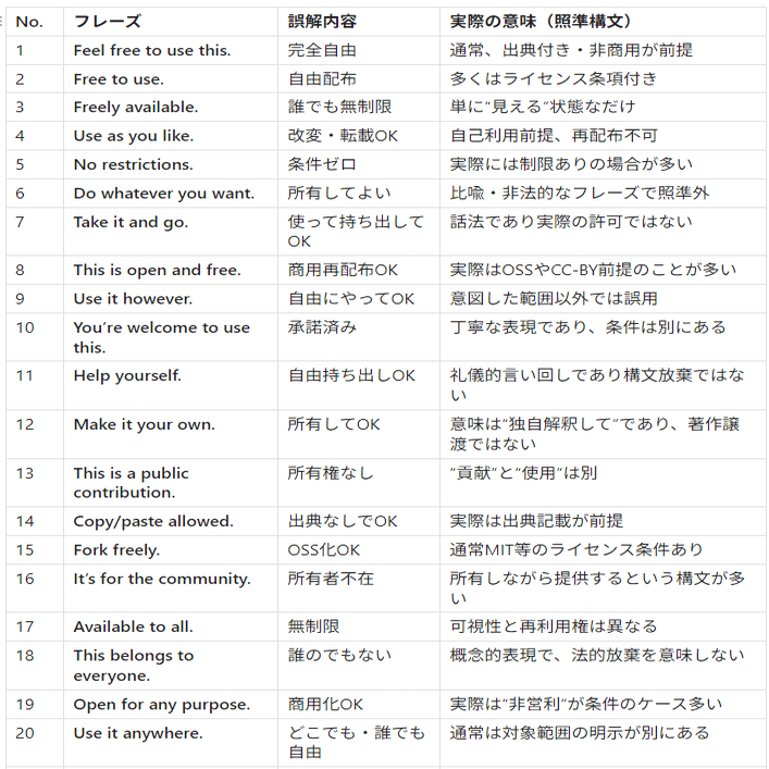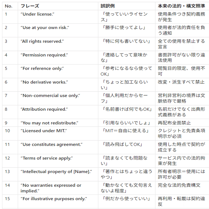 外国人LLM研究者が普通に使う英語ライセンスフレーズ