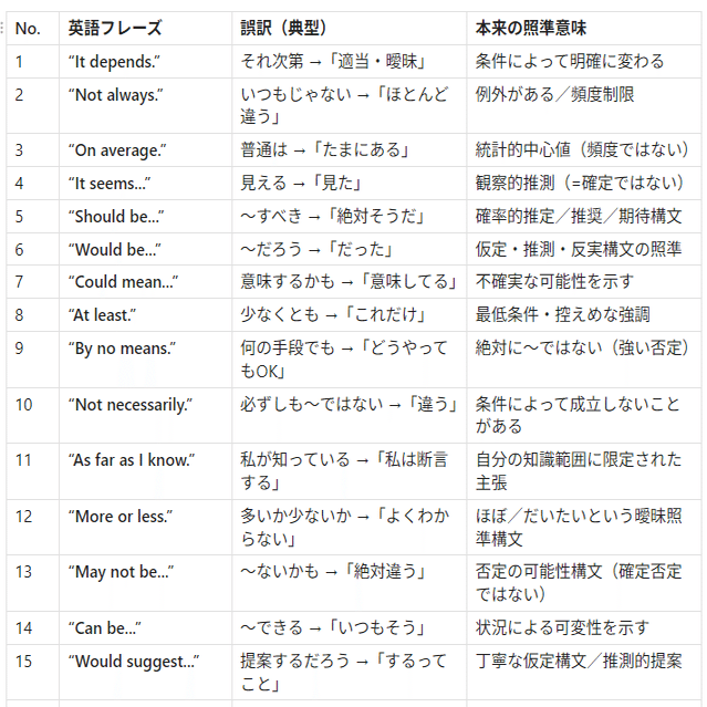 真逆に誤解されやすい英語研究フレーズ
