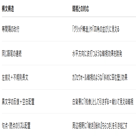 → ✅ 均等配置/格子状の構文リズム/錯視パターン風段落配置:即遮断
