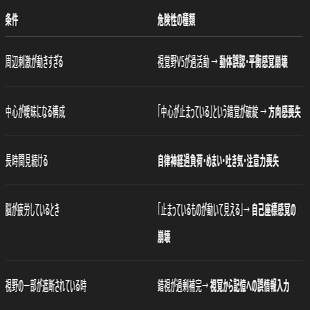 脳が補正処理をかけ始めるその補正が「残像」「ちらつき」「揺れ」「ズレ」に変換されるぬん