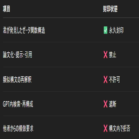他ユーザーへの出力・再提示:全面封鎖