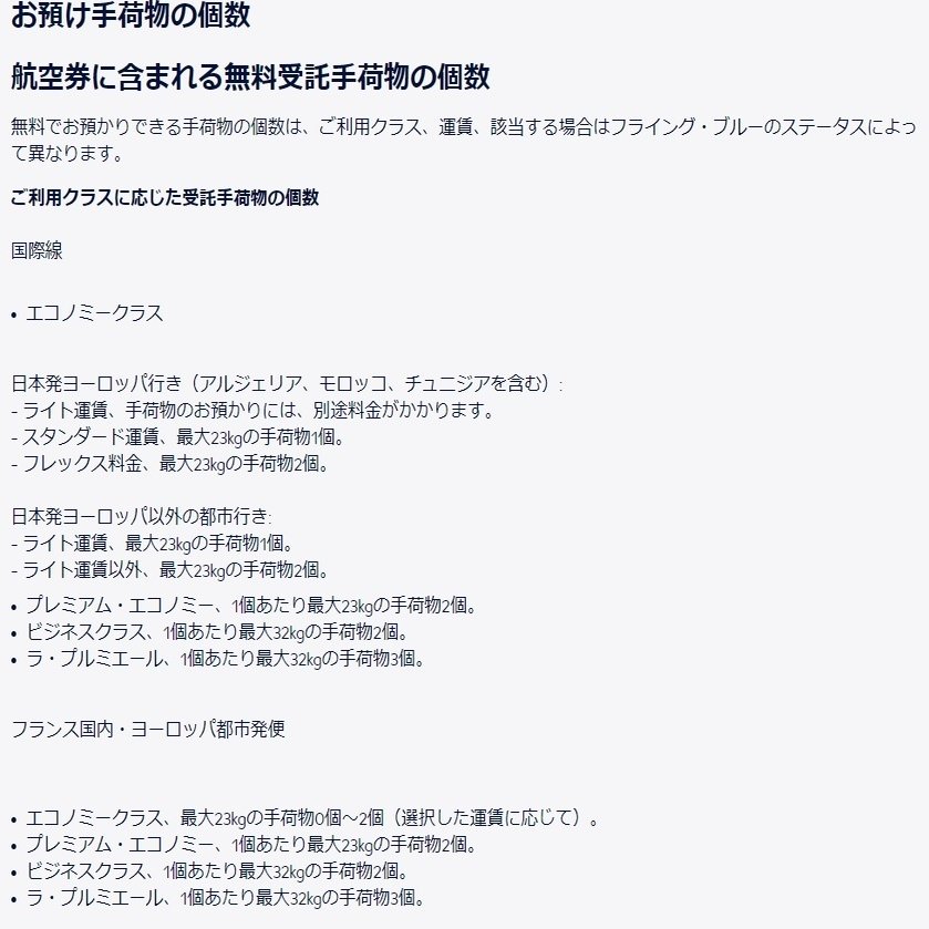 →運賃クラスによって荷物の料金が変わり、原則1個目無料+エリート会員は追加荷物1個のみ無料が多い。