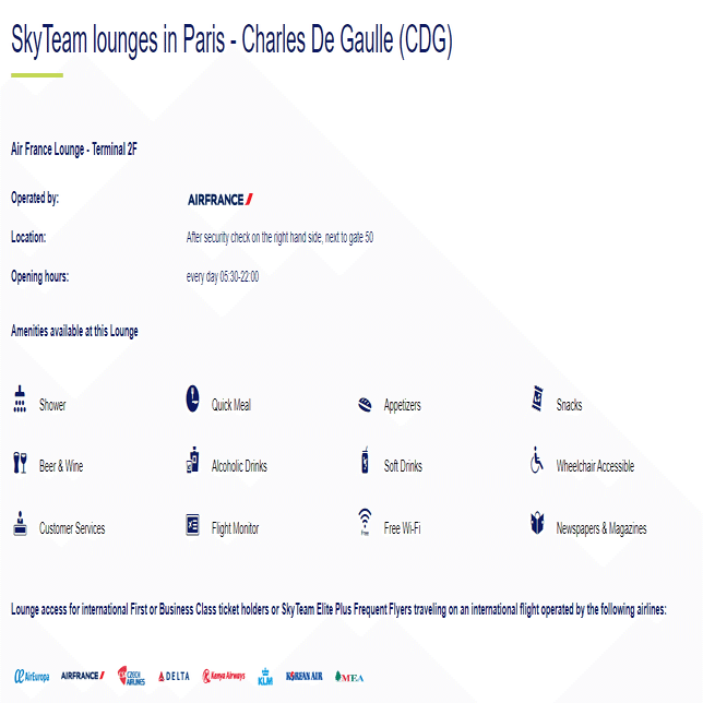 スカイチームのWEBサイトで確認した所、パリのAFラウンジは使えるようです。