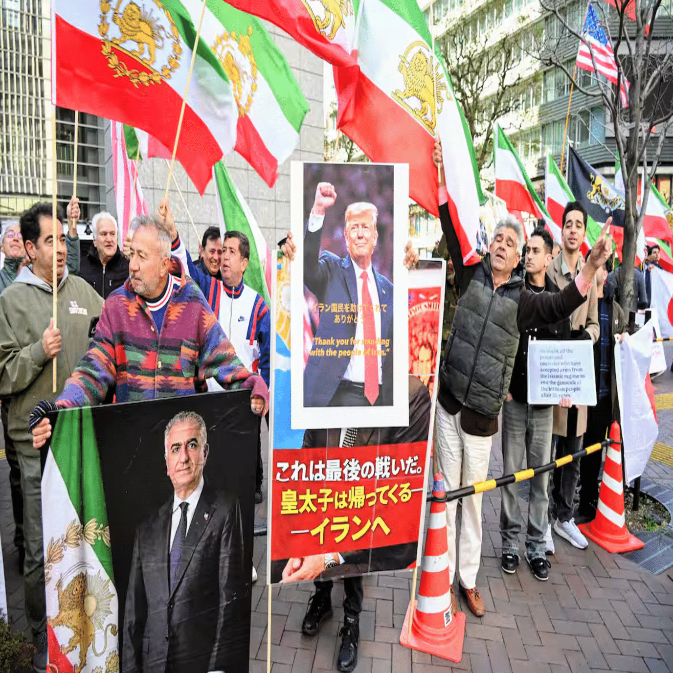 1979年のイラン革命前の王制で皇太子を務め、米国で亡命生活を続けるレザ・パーレビ氏の肖像画も掲げられた。パーレビ氏はイスラム革命体制からの移行を主導する意欲を見せている。