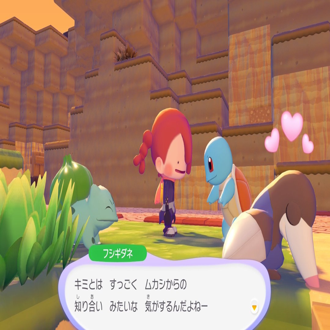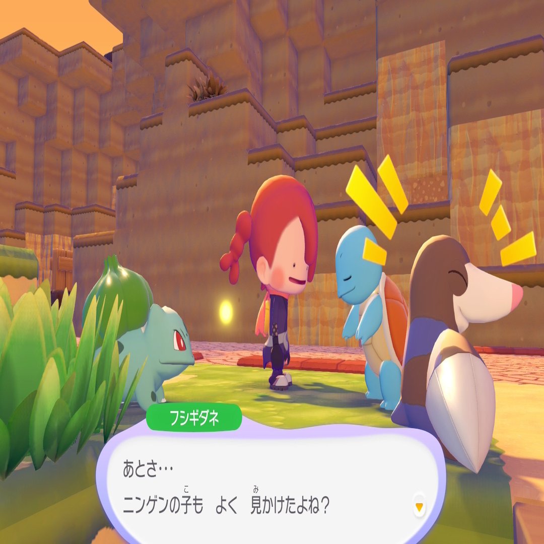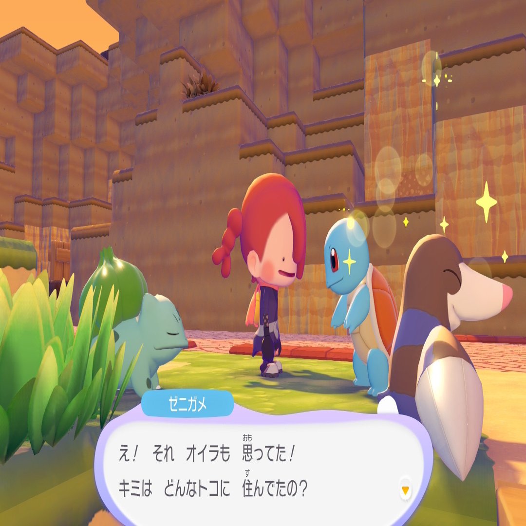ストーリーでもだんだん分かってくるんだけど、ポケモンたちの反応が「そっかあ……」「じゃあ住みやすくなったら戻ってきてくれるかな」なのが、やっぱり切ない……! もう、ニンゲンっていないんじゃない? でも、にしては「絶滅した」って感じはまだしないから、なんとも言えない。