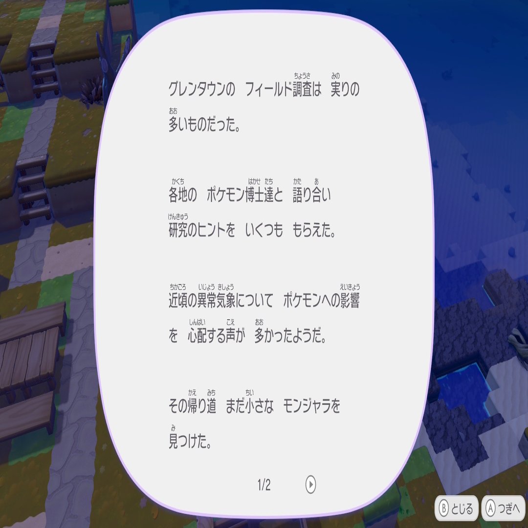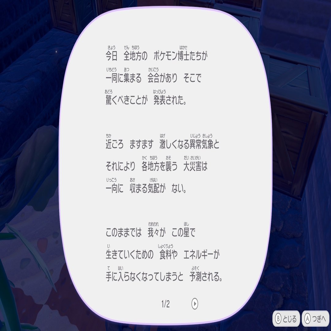 もう訳がわからん!!! 仕事行ってる場合じゃねえほど考察してしまう!!! ポケモンのサンドボックスゲームって銘打たれたものでスローライフする気満々だったのに、なんでこんなニーアオートマタみたいな空気を感じているんだ。アドバイザーでヨコオタロウさん連れてきてないですよね?