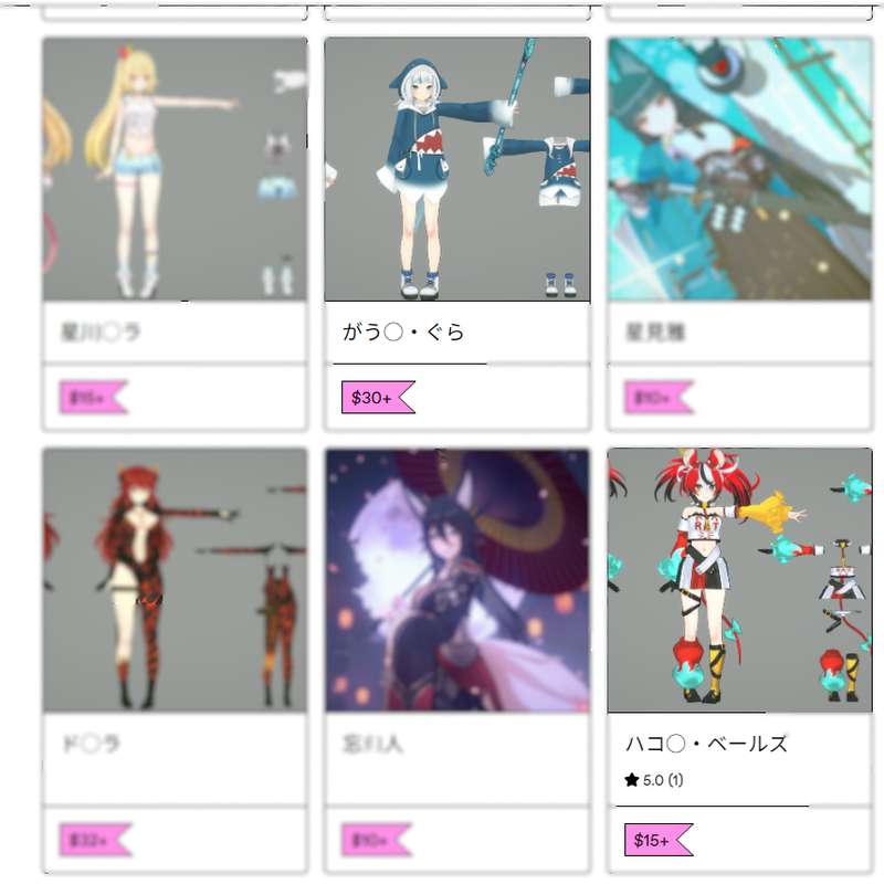 ホロライブの方の出来の良いキャラモデルは基本有料で配布されてる方が多く、