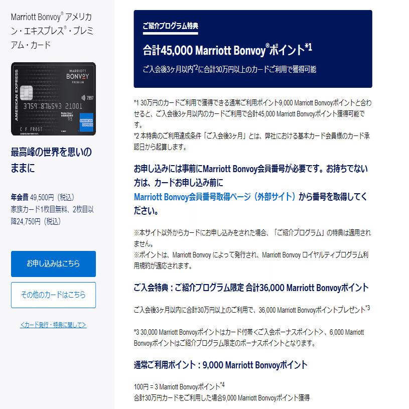 日本のマリオットプレミアム(以下MBA)の入会特典は、45,000ptと微妙な内容😰(年会費4.95万円)。