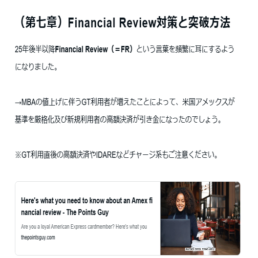 最近GT利用直後にFinancial Reviewを科される方が増えてきたので、第七章でまとめてみました。