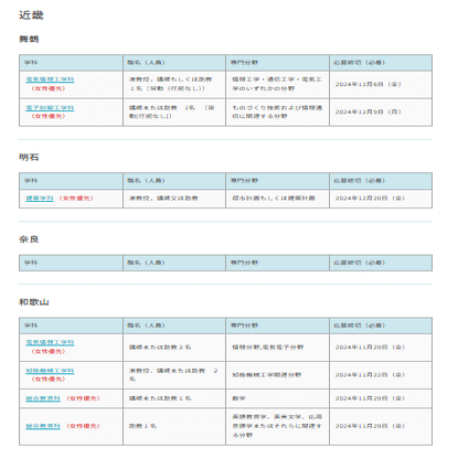 高等専門学校,高専の女性優先・限定公募の割合(約93.5%)を出すだけの記事 2024/11/05