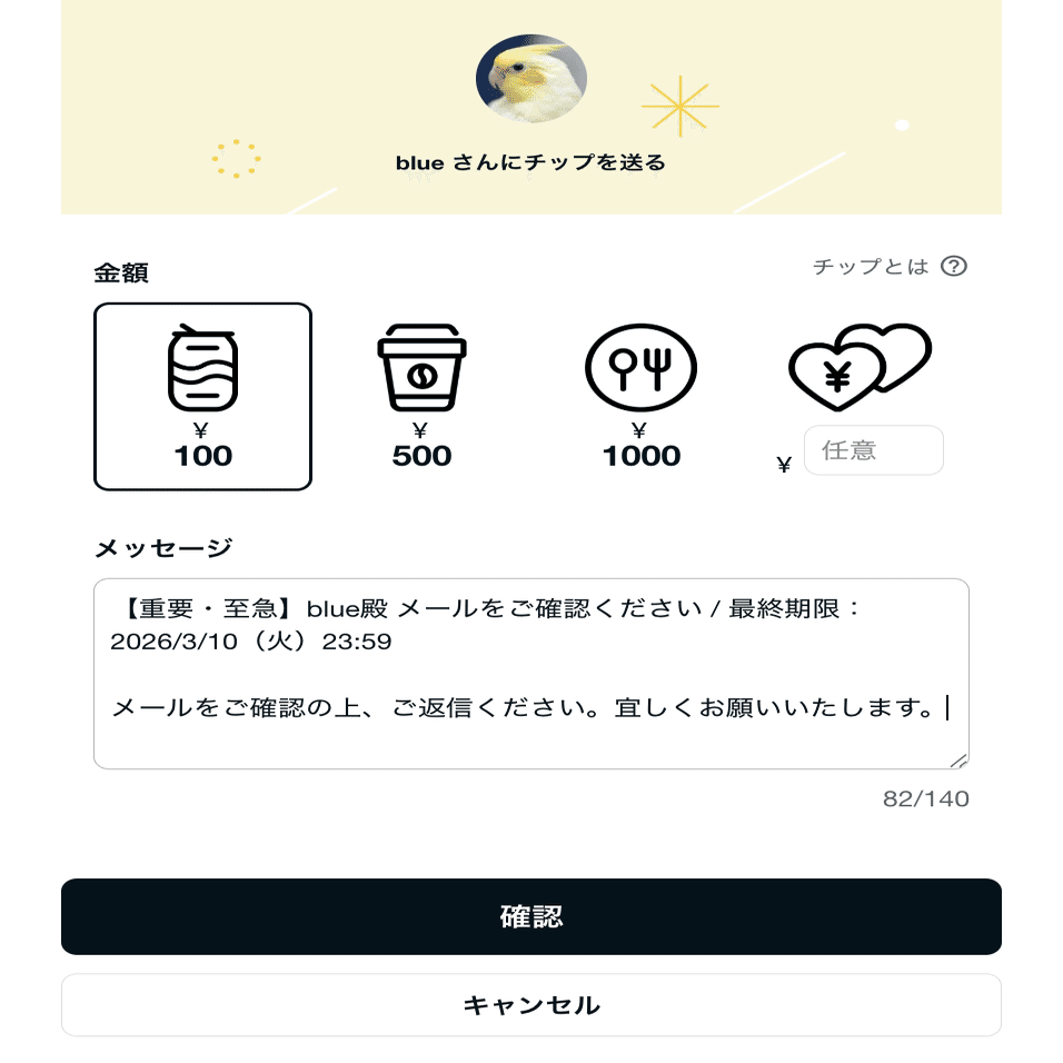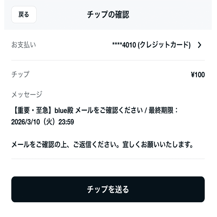 【重要・至急】blue殿 メールをご確認ください / 最終期限:2026/3/10(火)23:59