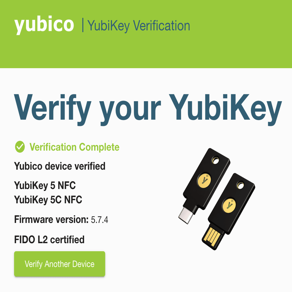 ちなみに私も念のため届いたYubiKeyをチェックしましたが、ちゃんと 5.7.0 よりも新しいバージョンになっていました!
