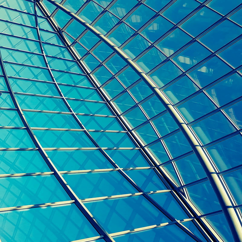 Renewable Corporate Futurismのビジュアルには、企業建築、幾何学、ベクターグラフィックス、ミニマリズムなどがよく用いられます。