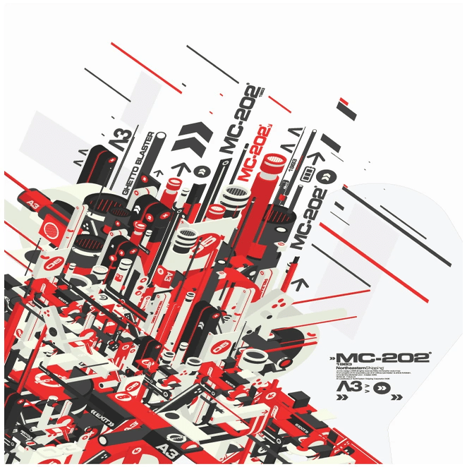 Funky Metroはスピーカー、DJミキサー、ヘッドフォンなどの音響機器や、人間のシルエットなどをベクターグラフィックで表現した美学です。
