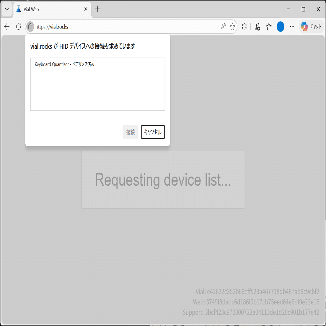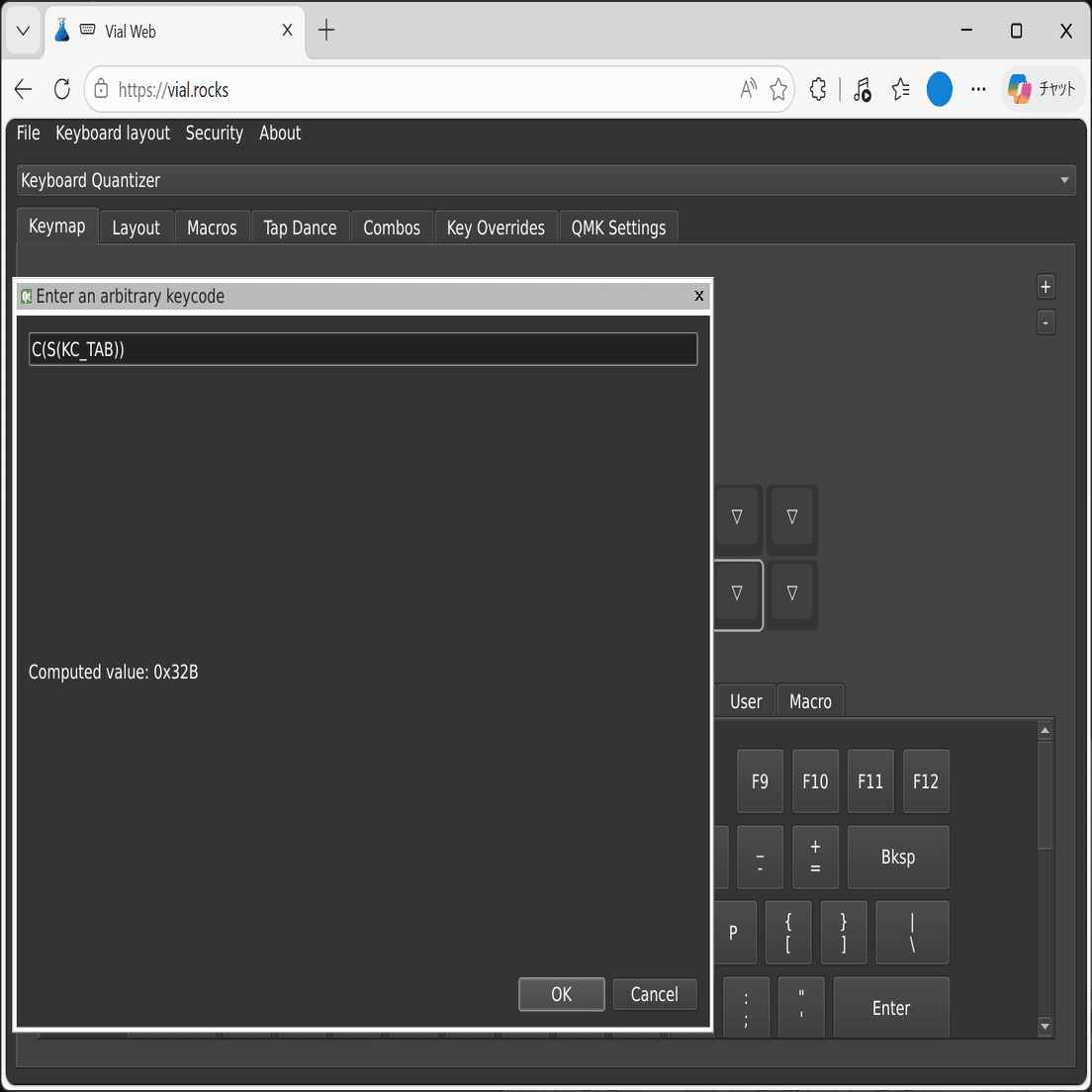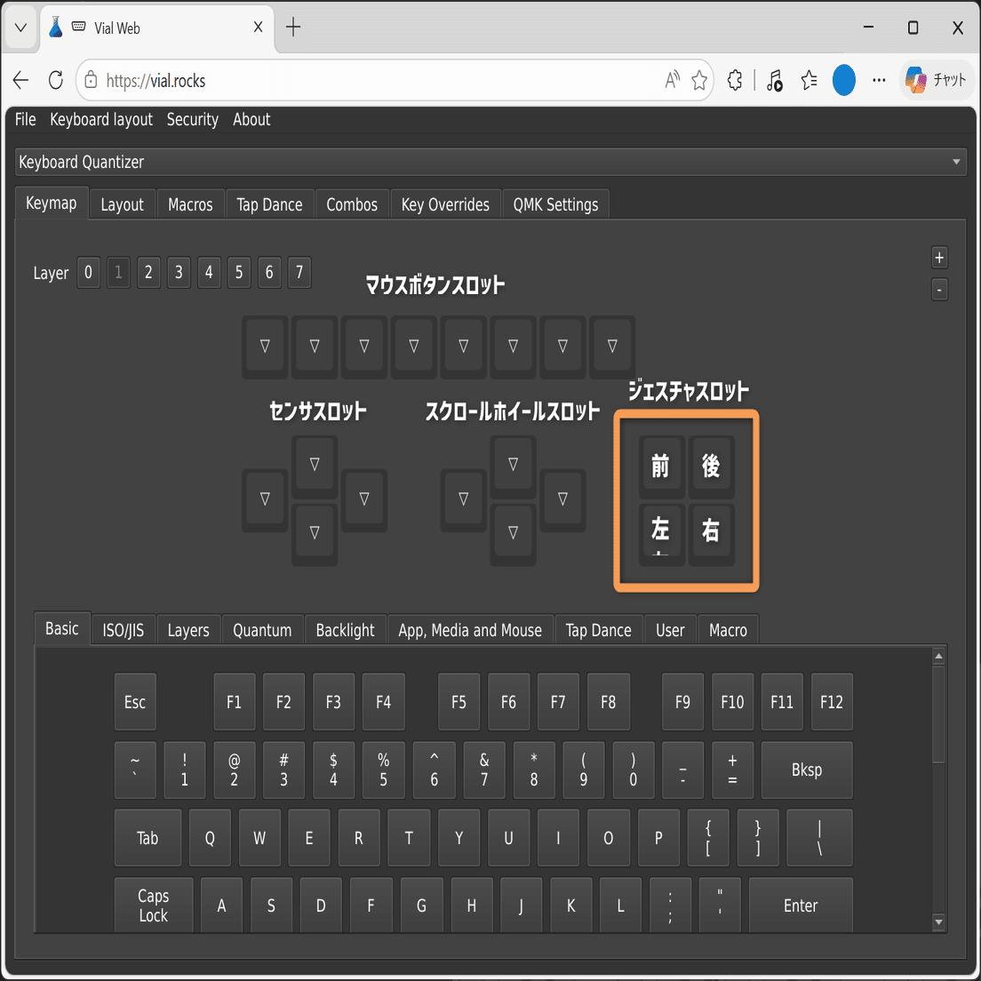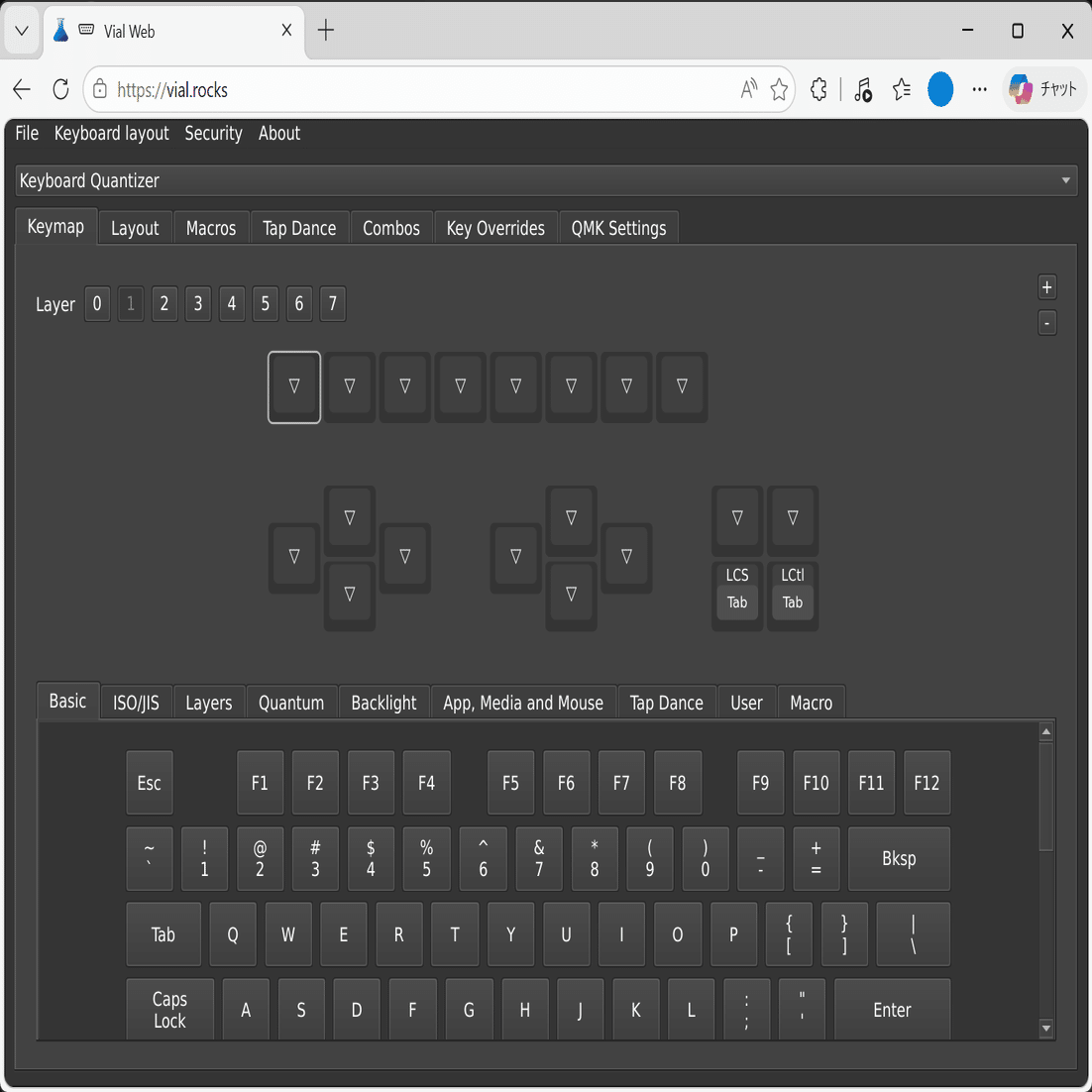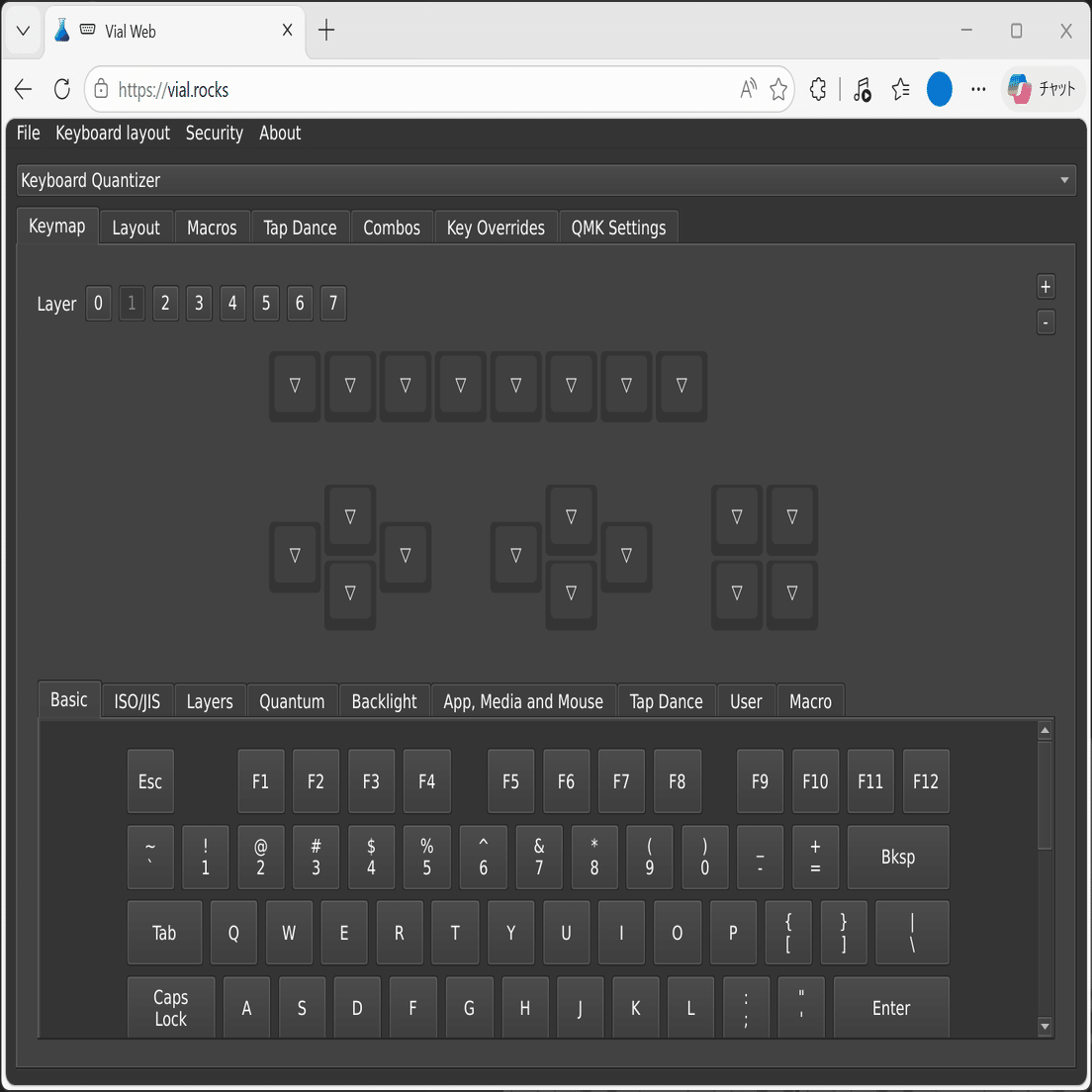 KQMを介してPCに接続したデバイスは、QMKファームウェアデバイスのリマップWebアプリとして有名なVial・Remapにてボタン等のリマップが可能となります。