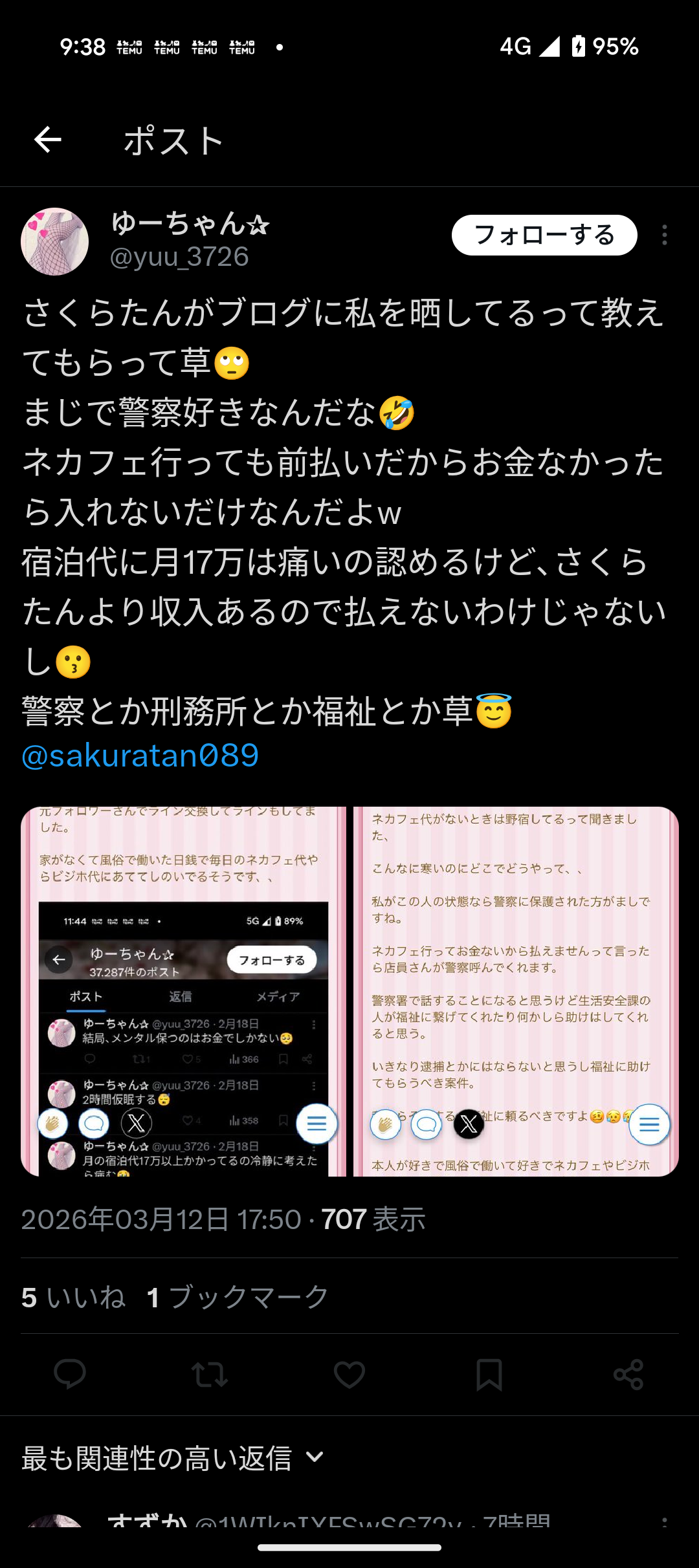 さくらたんより収入あるとか強がりすぎ🤣