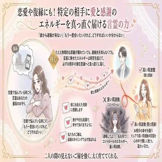 💌 相手の心に届く、愛の言霊 :「彼に出会えた奇跡に感謝します」 「彼が今日も笑顔で、幸せでありますように」 「私たちのご縁は、最善のタイミングで必ず結ばれる」