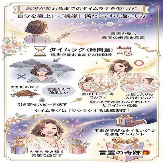 10. 言霊が現実になるまでのタイムラグは、あなたがヒロインとしてさらに美しく輝くための「ワクワクする準備期間」です。