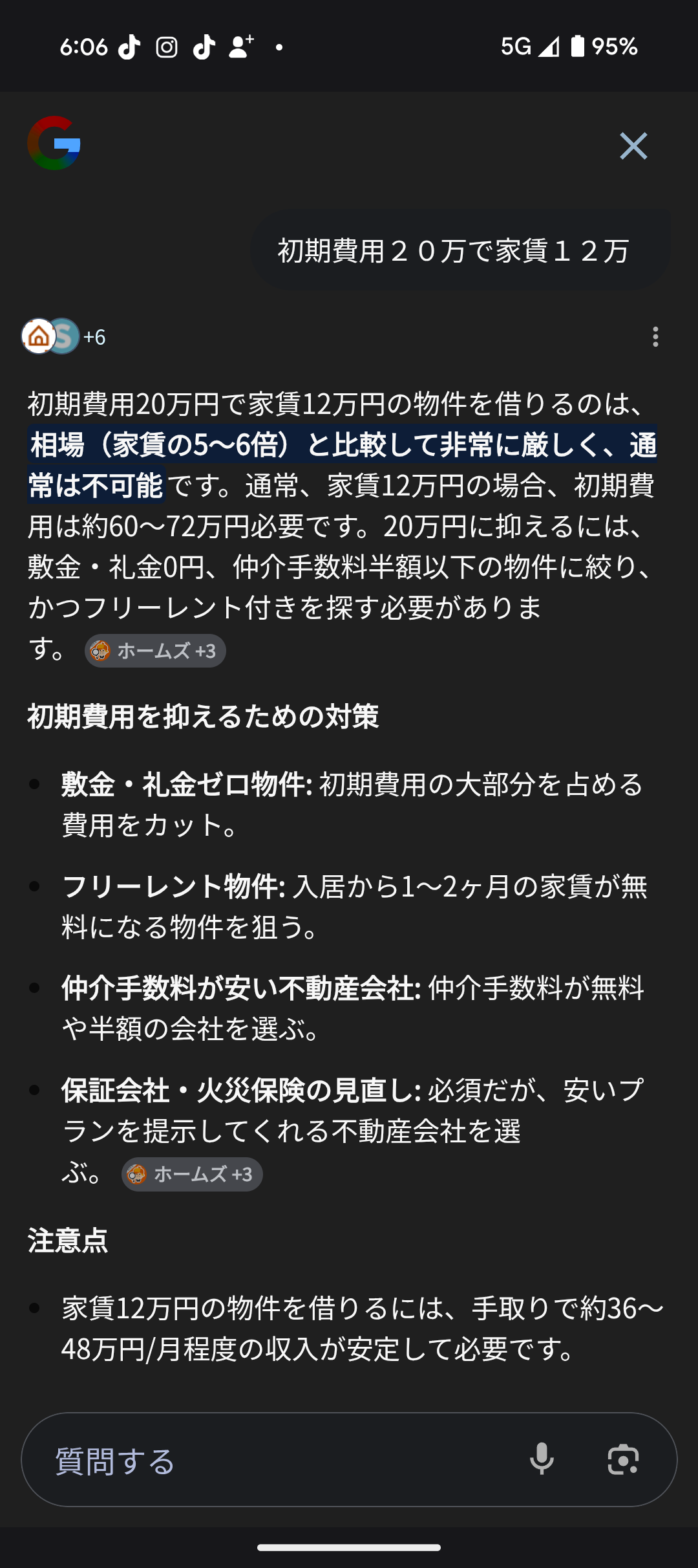 あと家賃12万で初期費用20万のことも調べてみたけど😅😅
