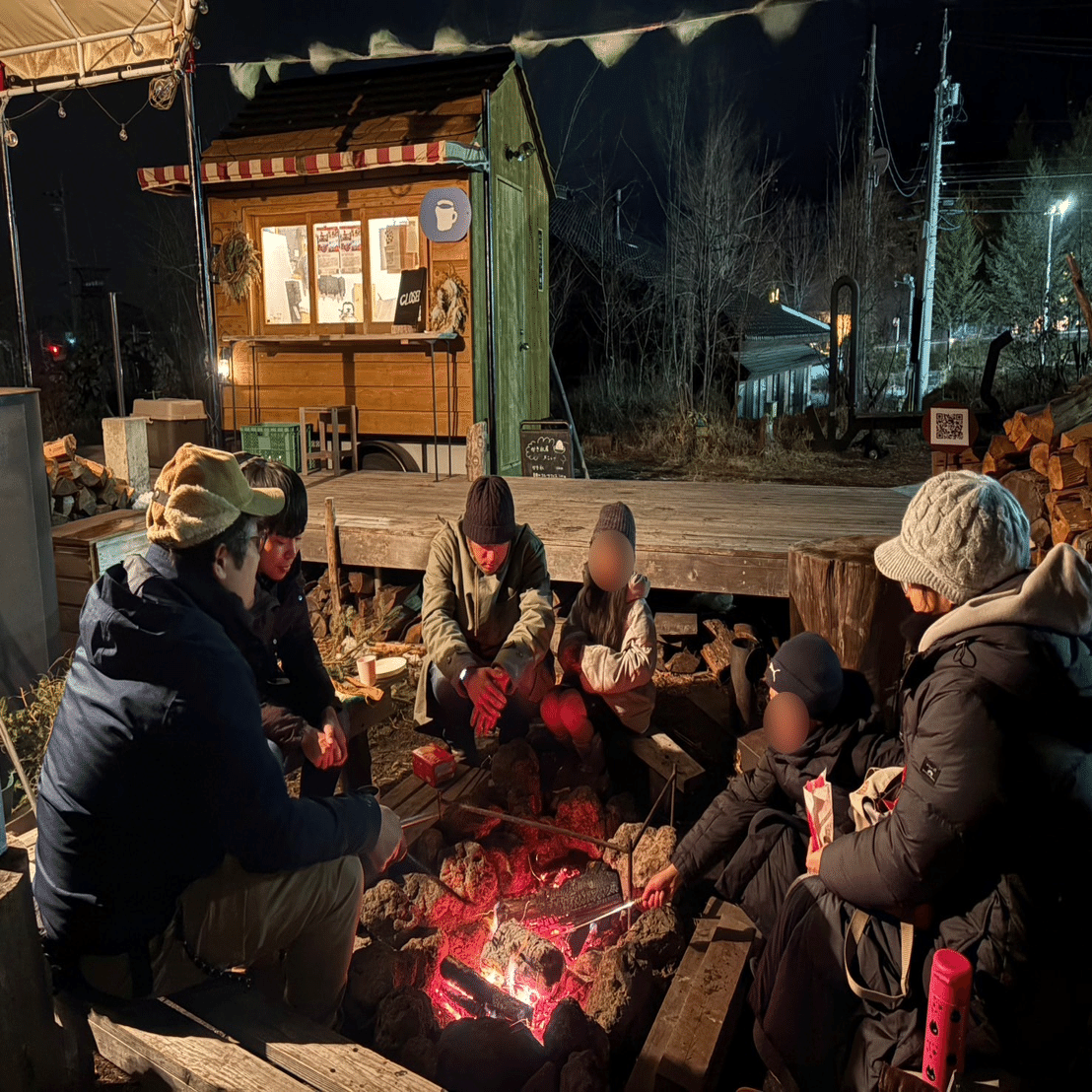 大きな橋を渡って「広場」に入ると、たくさんの大人から子どもが集って、地域のお店が出店したり、子どもたちが音楽の発表会をしたりしていた。月一回、この場所で「夜市」を開催しているらしい。真ん中にはキャンプファイヤーさながらの焚き火が鎮座し、ぱちぱちと火をはぜていた。当時、重めのうつ状態で誰とも話せなかった僕は、ずっと一人で焚き火を眺め続けていた。
