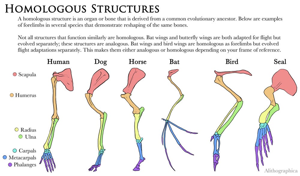 At least, this is the more simplistic view of Schopenhauer’s philosophy that the historian Arthur Lovejoy so beautifully dispensed with in his 1911 Schopenhauer As An Evolutionist. As Lovejoy points out, just a few pages down from this excessively Platonic conception of nature and species, one will begin to read in Schopenhauer’s explicitly evolutionist framing. More importantly, he does so by referring to what is still today one of the strongest arguments in favor of the idea of “descent with modification”—homologous structures. Strangely for him this was not evidence of modification as such or any notion of change, but rather the permanence of structures as generated by the Will: