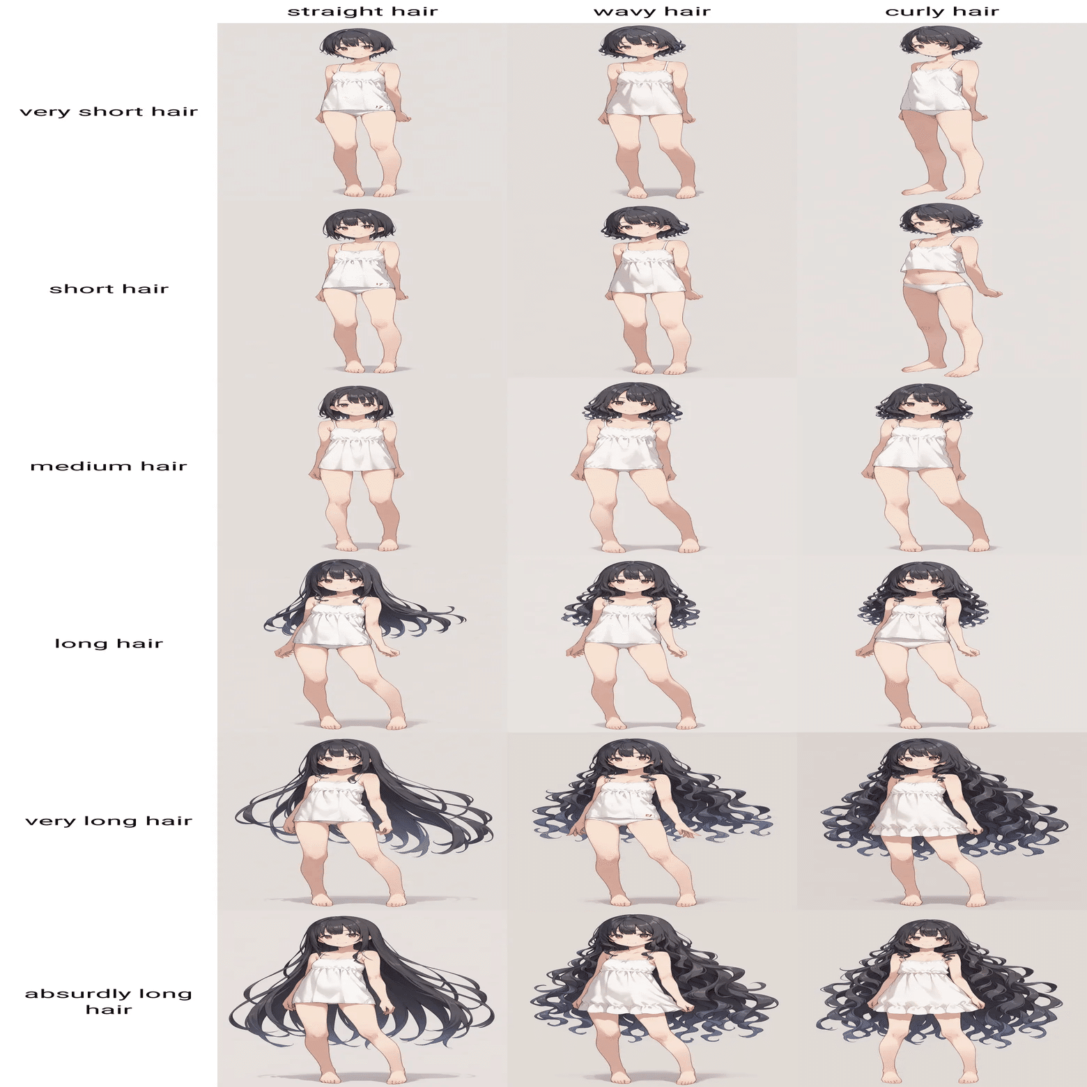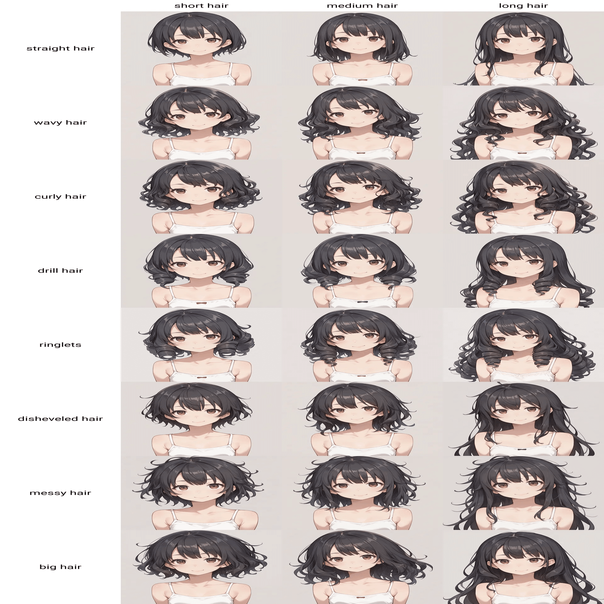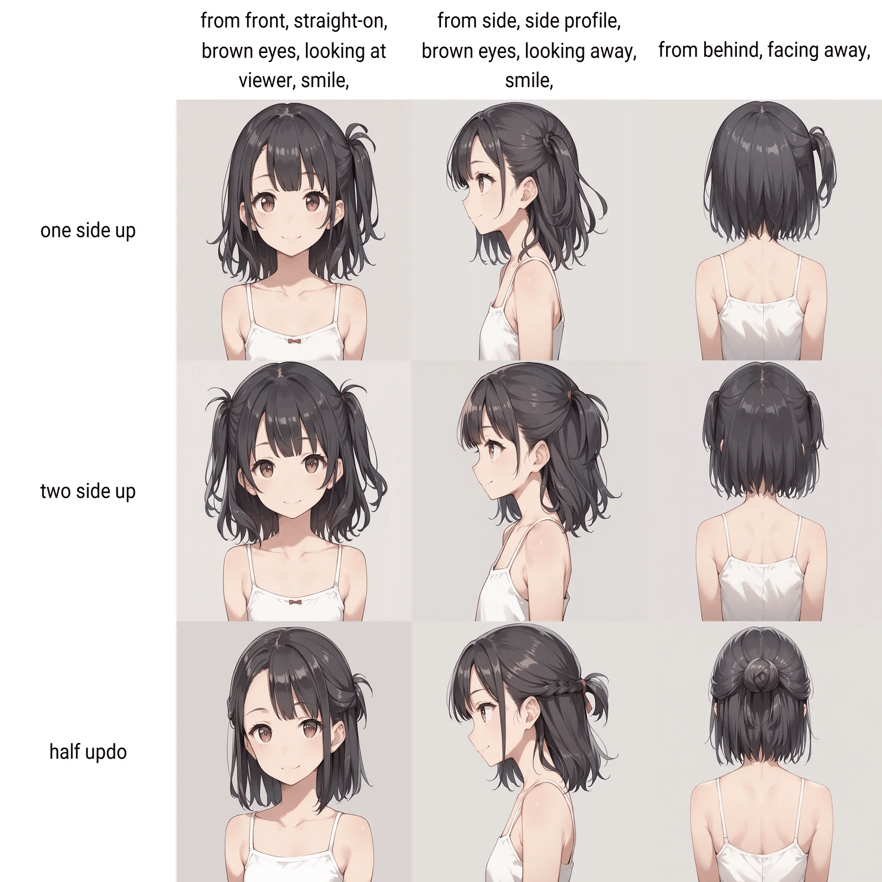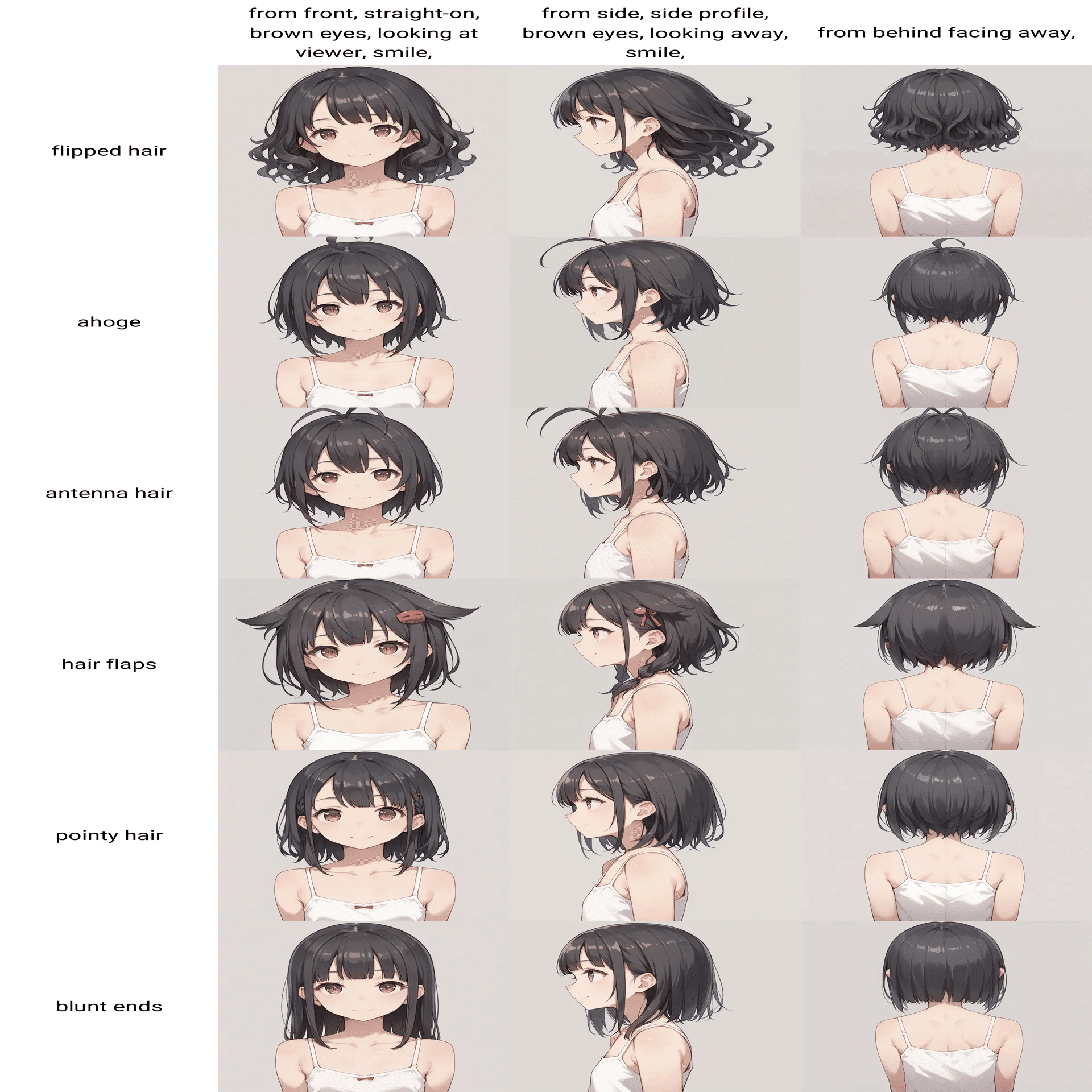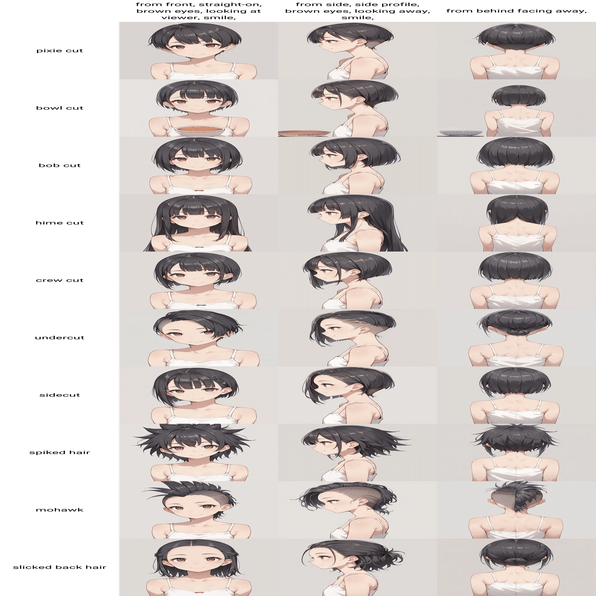 髪型に関するプロンプトの比較です。