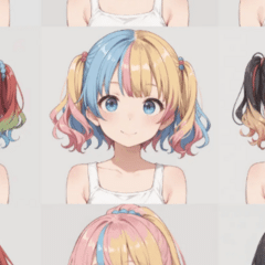 いろんな髪型が表現できますが、ゲーム用に使用する場合は、出力が安定している髪型のみに限定するのが良さそう。