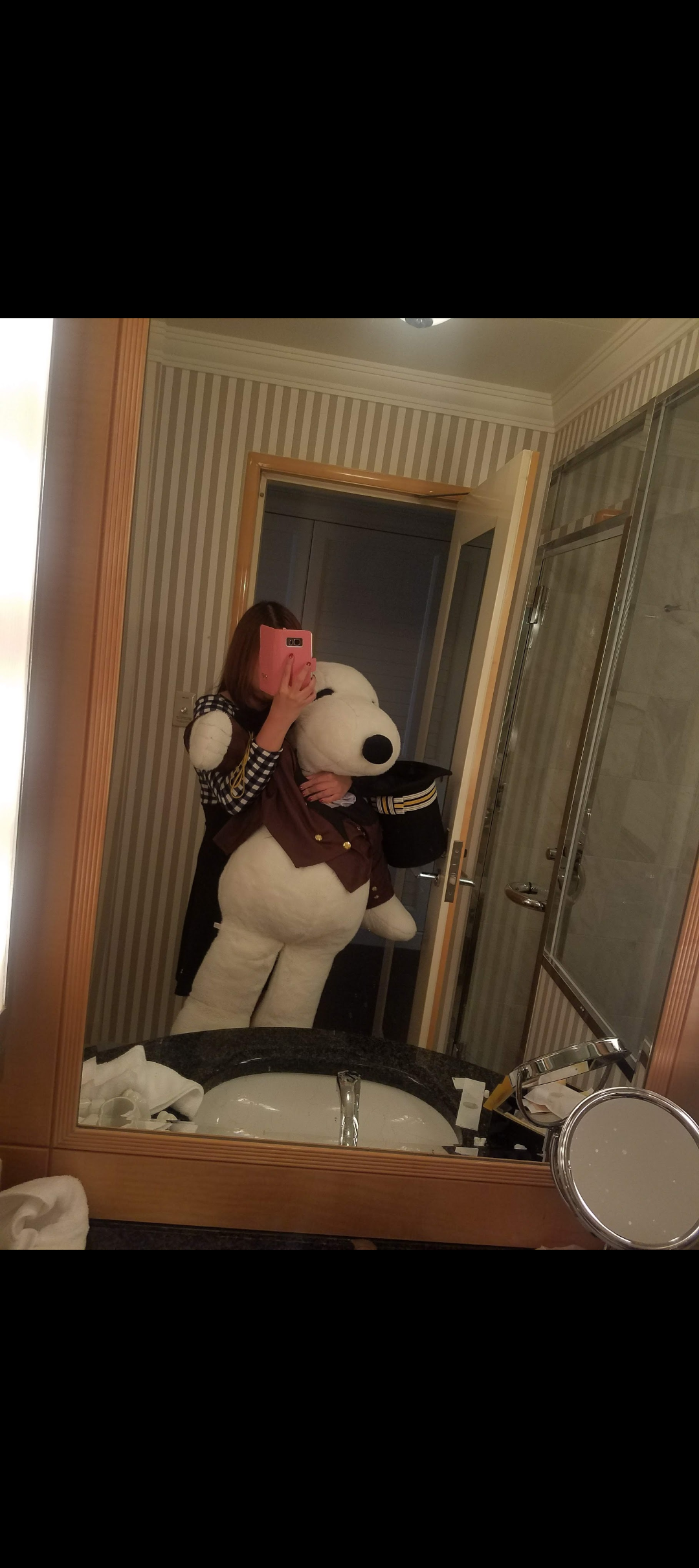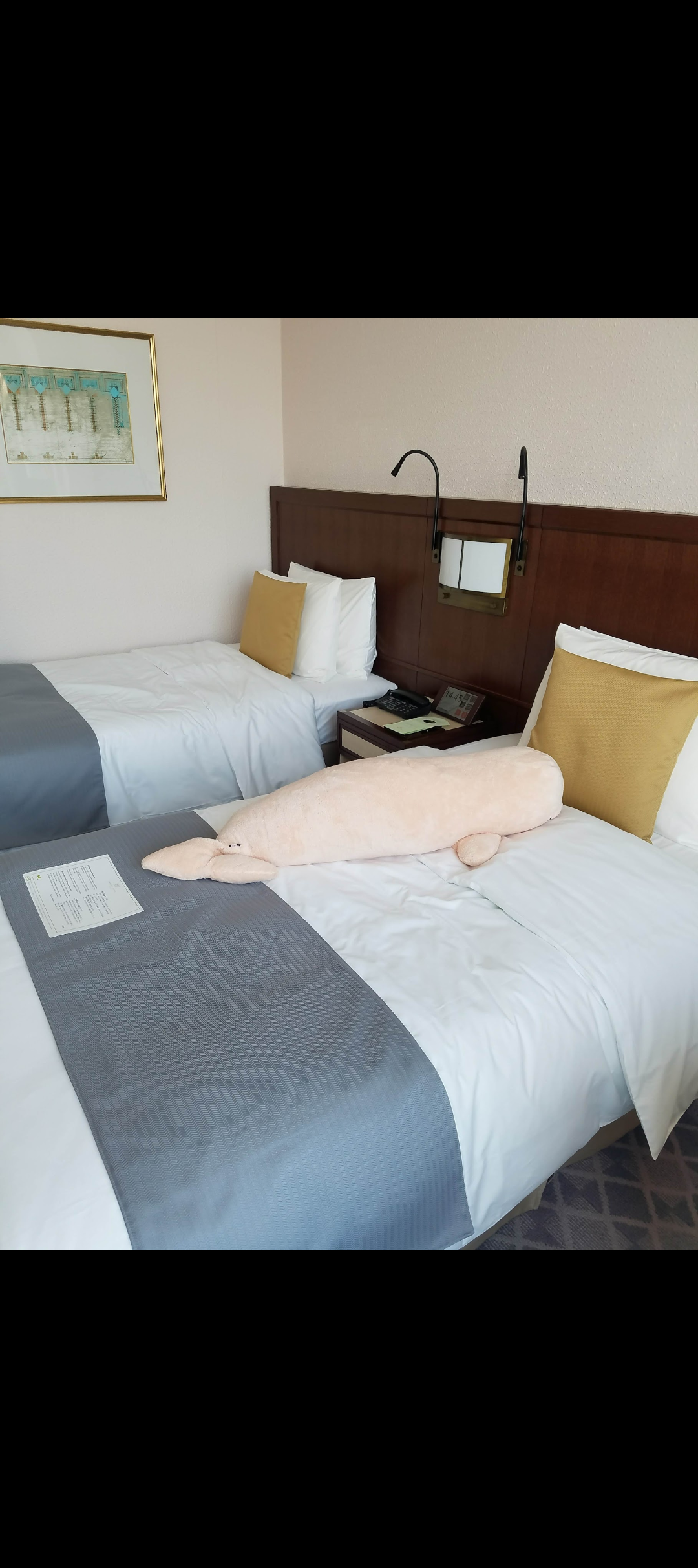 八景島シーパラダイスからの帰り道ででっかい🐬のぬいぐるみを持ってチェックイン🤣