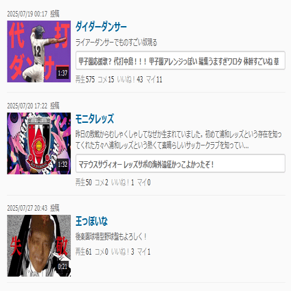 →タグのうち、5分以内・投稿1ヶ月以内・スポーツジャンルの