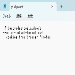 yt-dlp.confを用いて上のオプションを