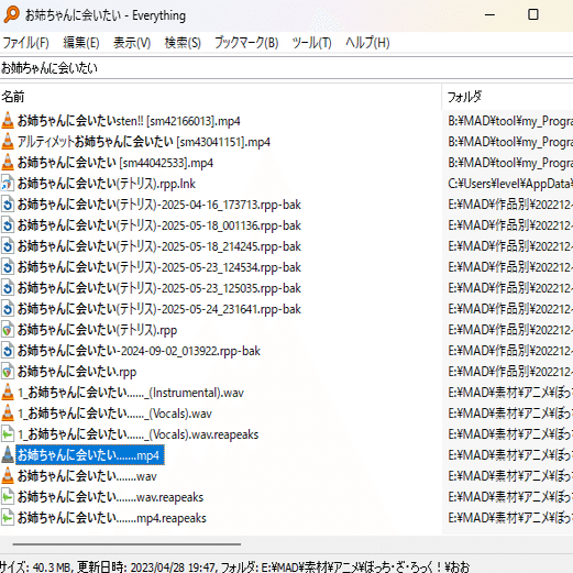 10万件を超えている中からエクスプローラーでファイルを探すのは極めて困難なので、Everything(ファイル検索ツール)を利用しましょう