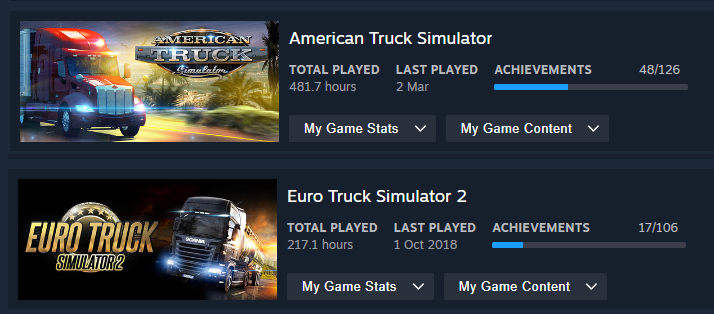 ETS2 and lately Snowrunner too. Love both games.