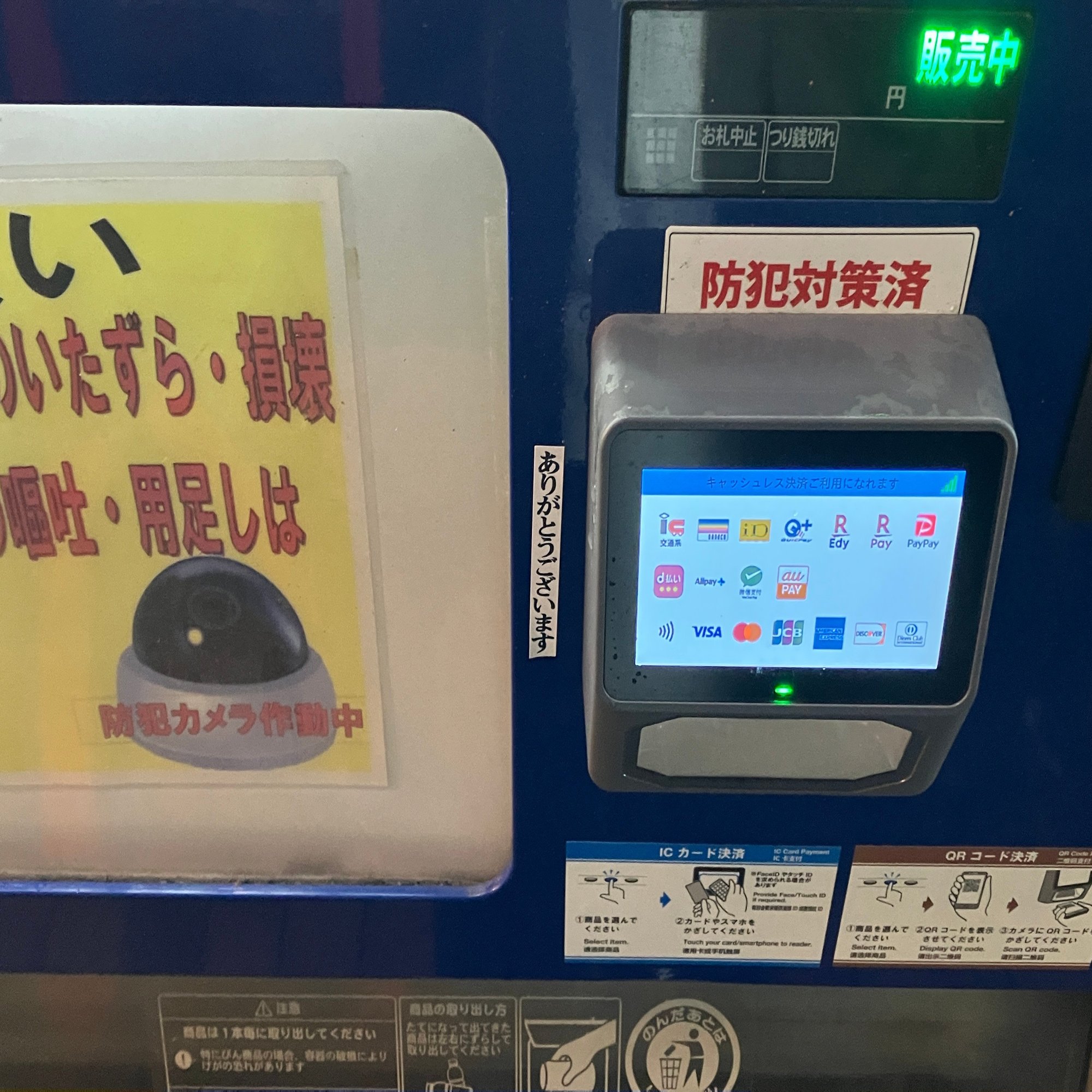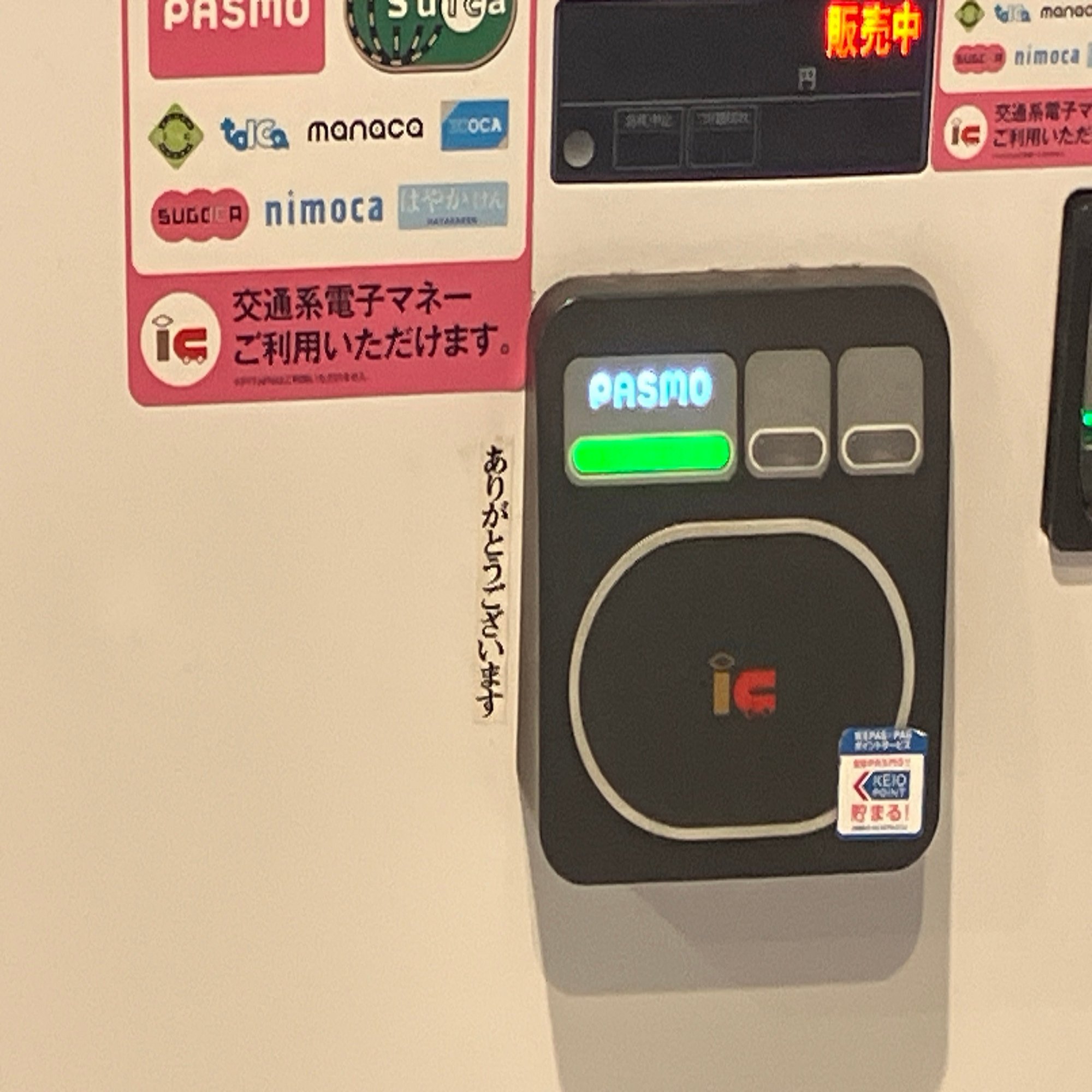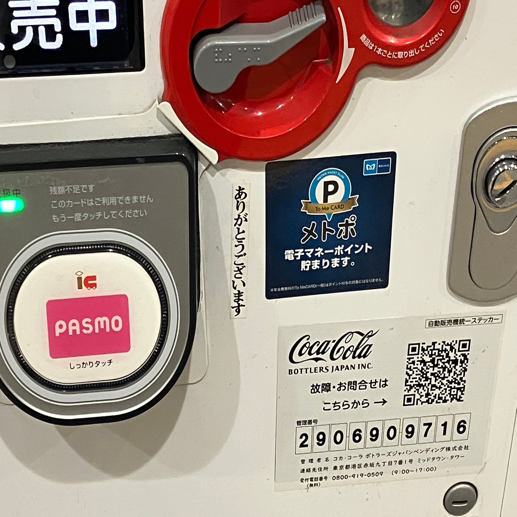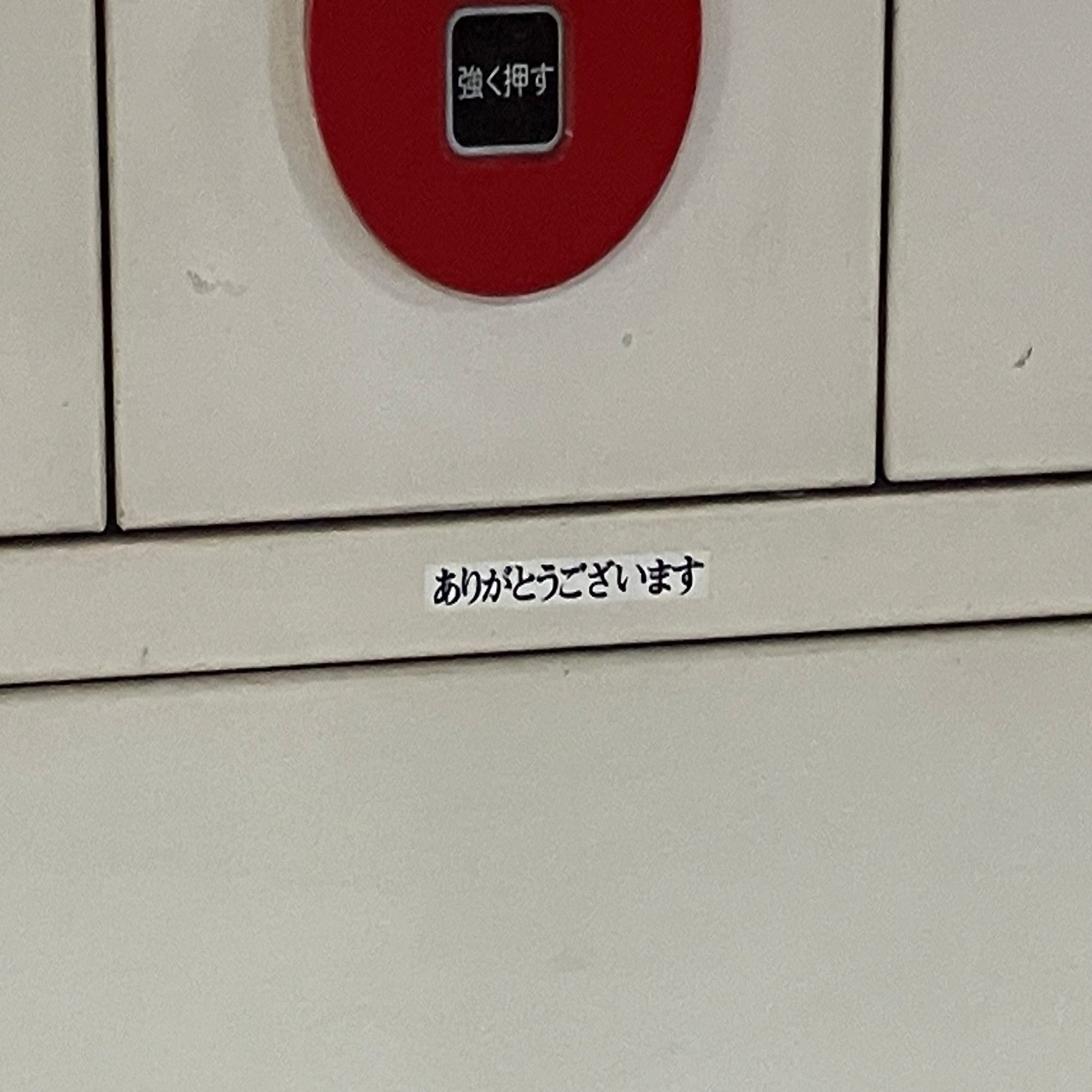 東京都 築地駅のホームの自動販売機に「ありがとうございます」と書かれたシールが貼られているのを見つけた。