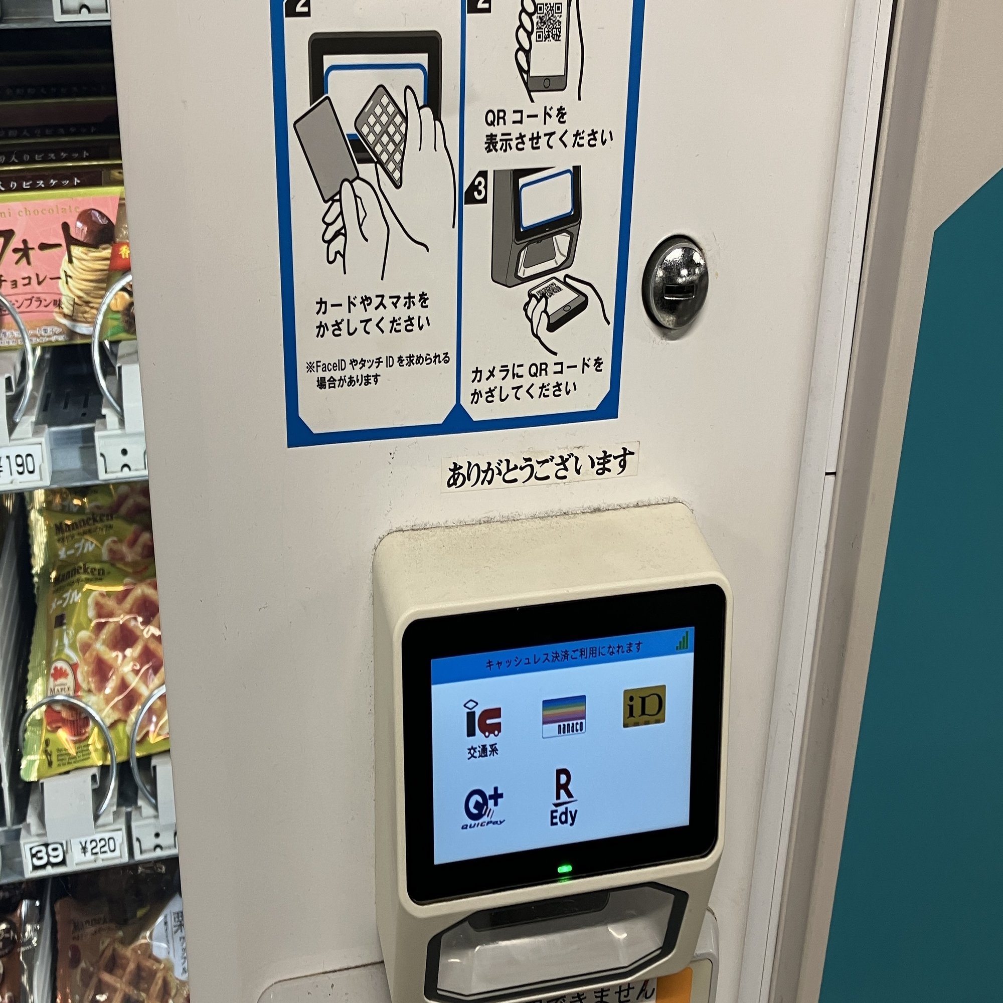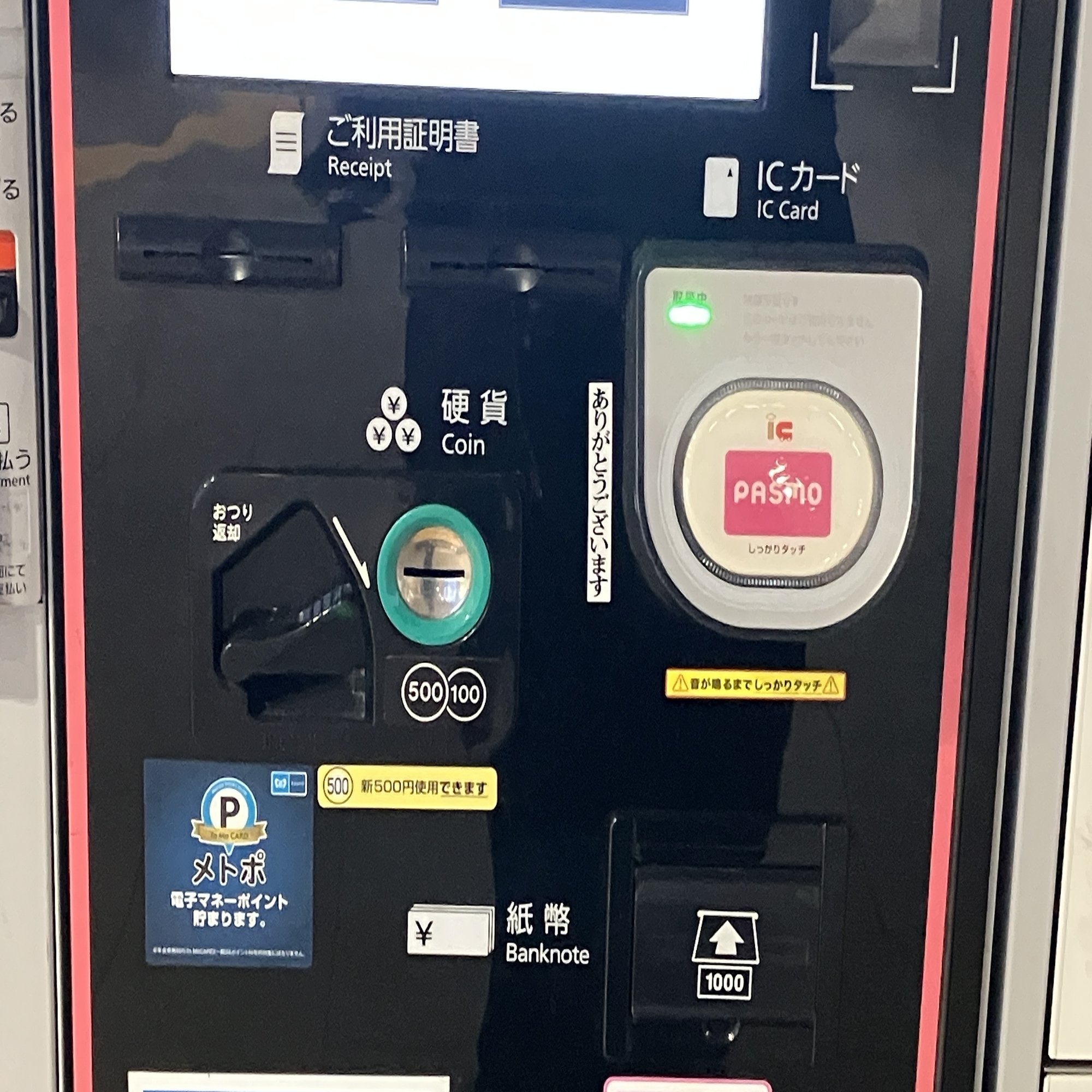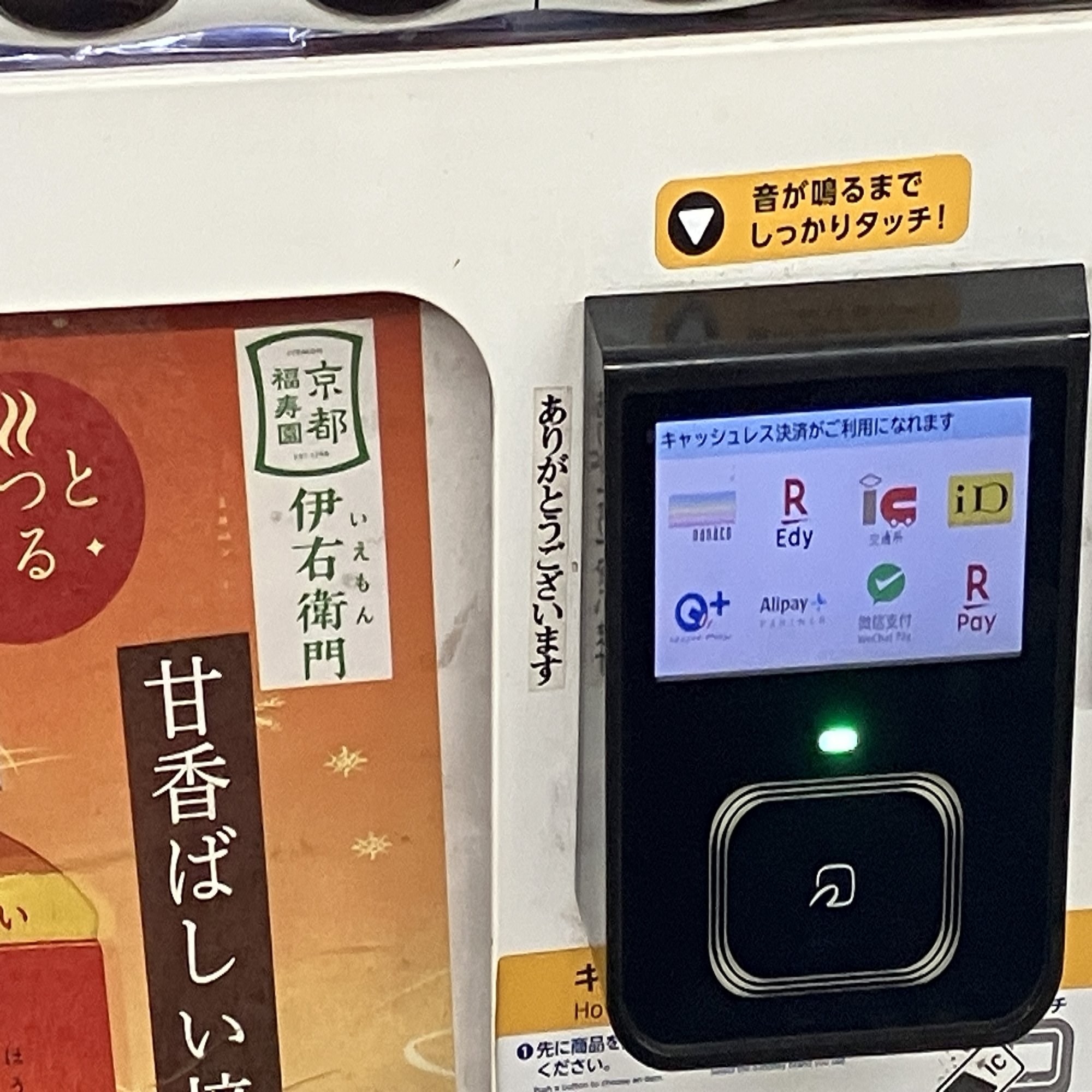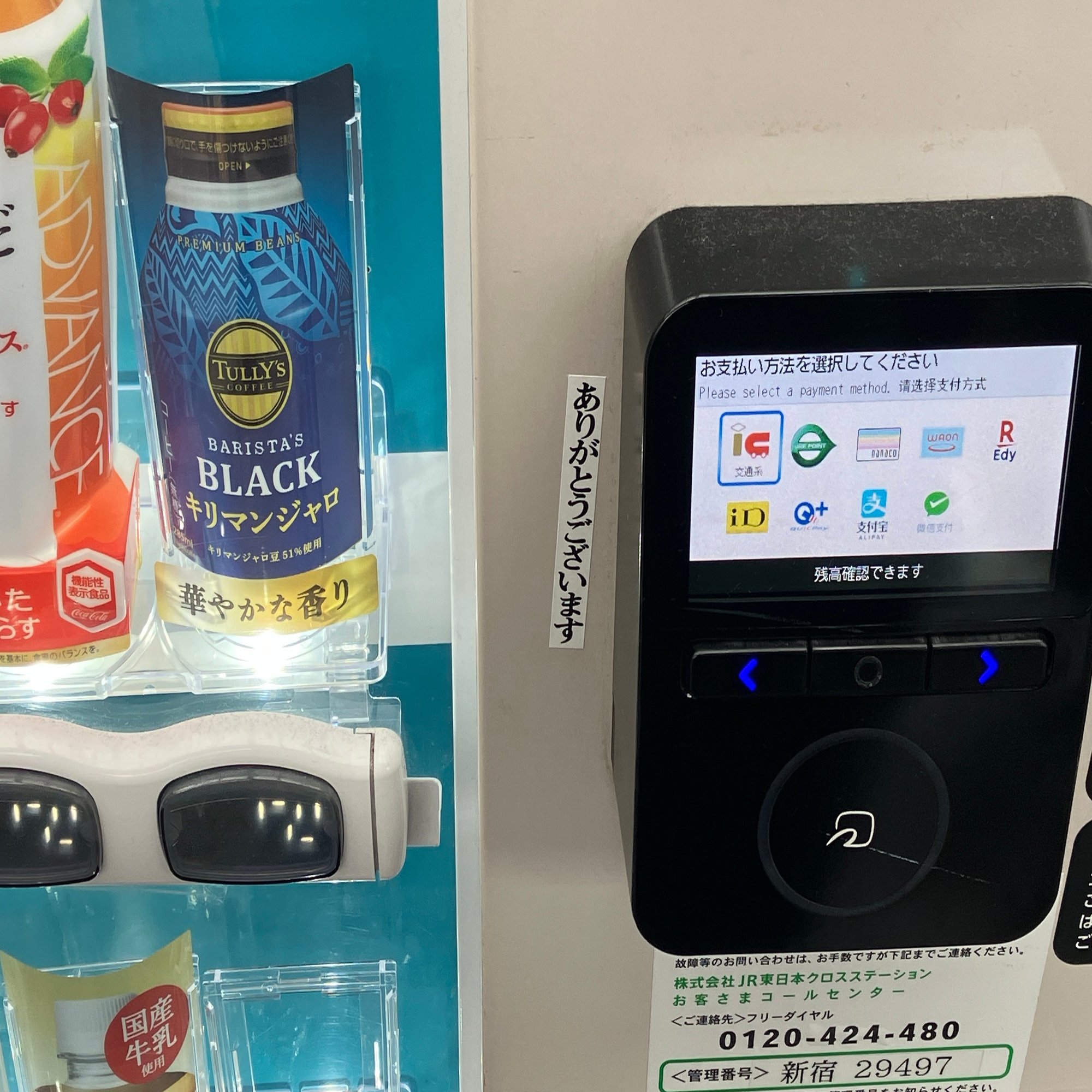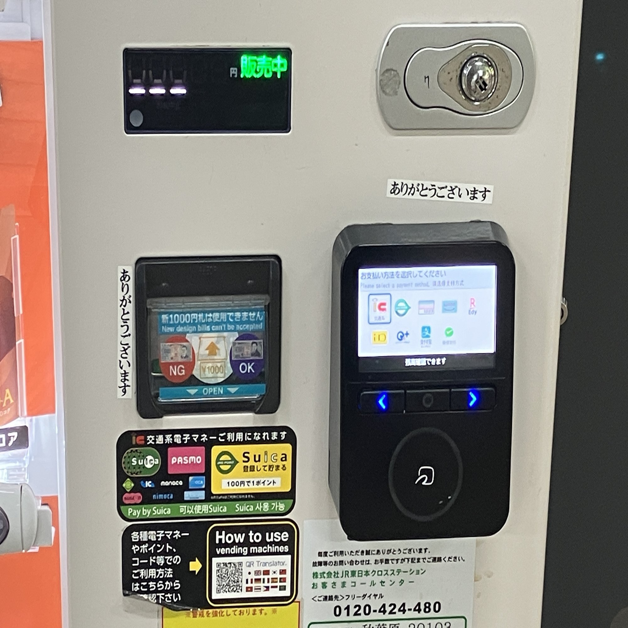 東京都 築地駅のホームの自動販売機に「ありがとうございます」と書かれたシールが貼られているのを見つけた。