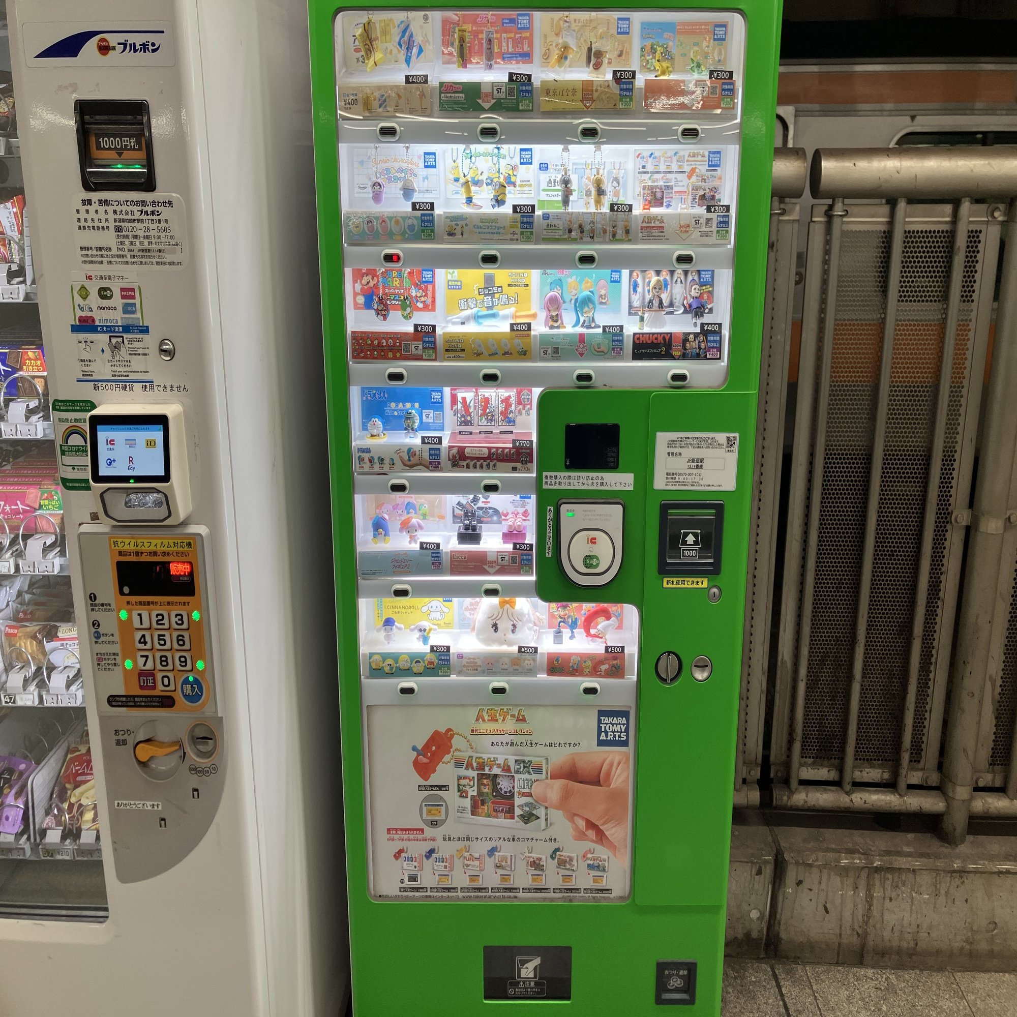 新宿駅にはおもちゃの自販機にもシールがある。