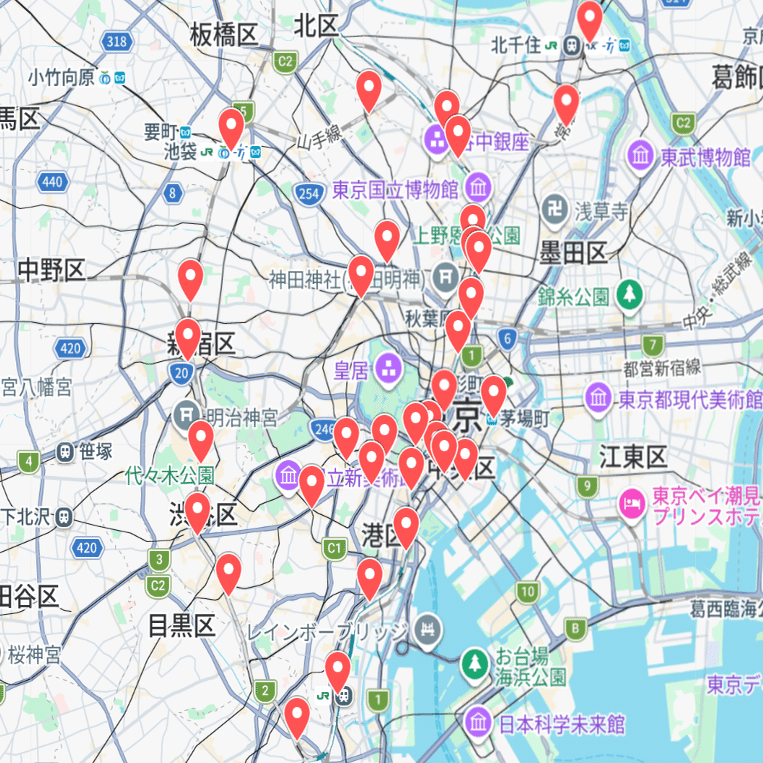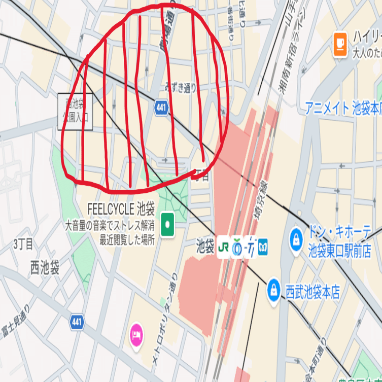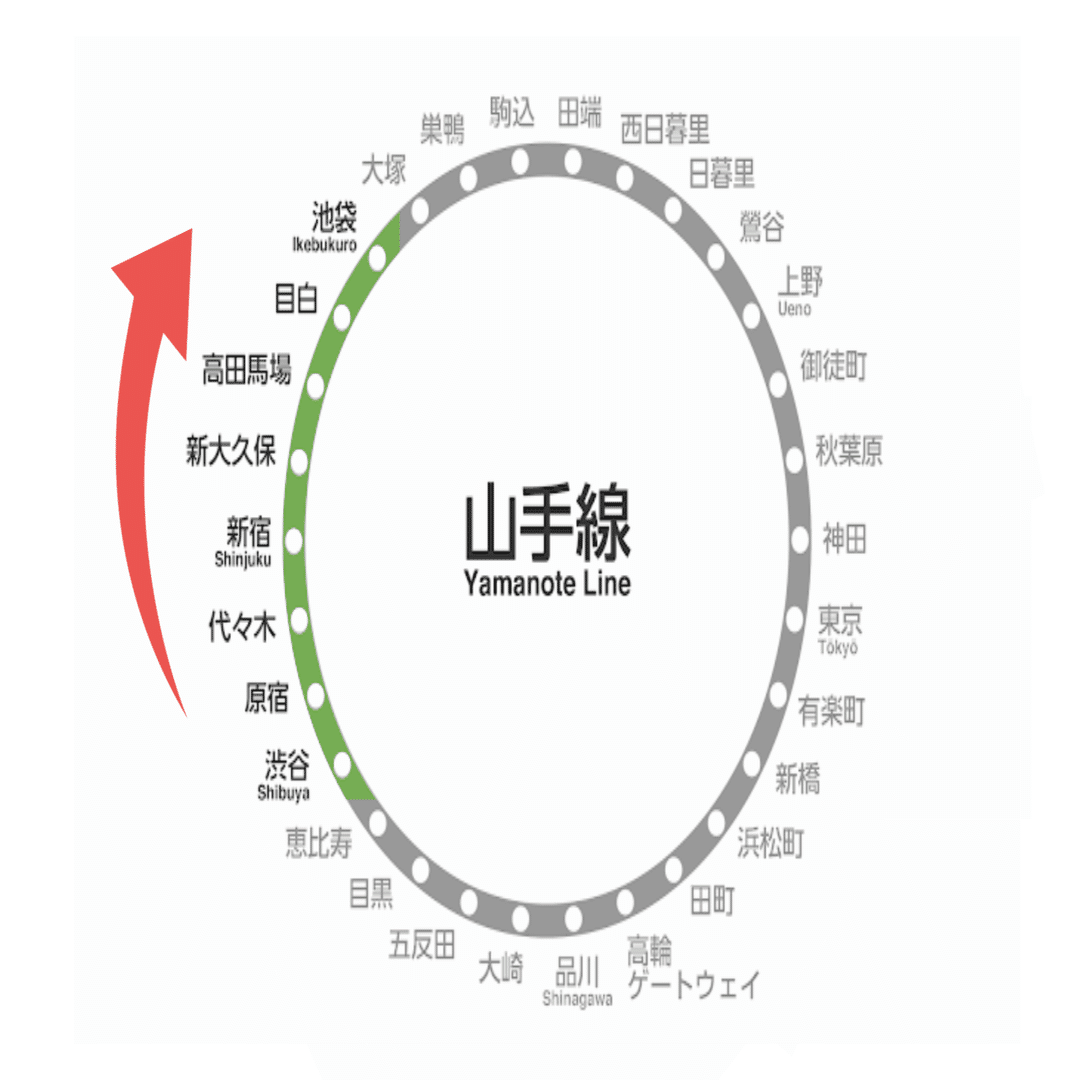 初めは渋谷からスタートして外回りに進み、池袋まで調べる。