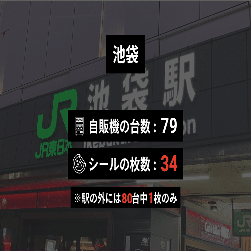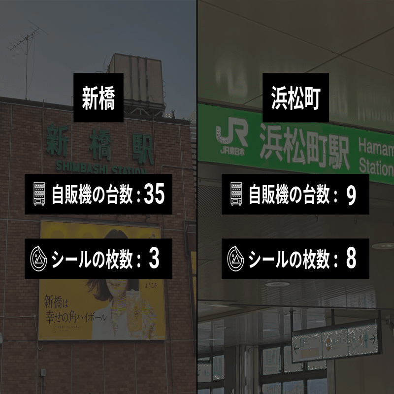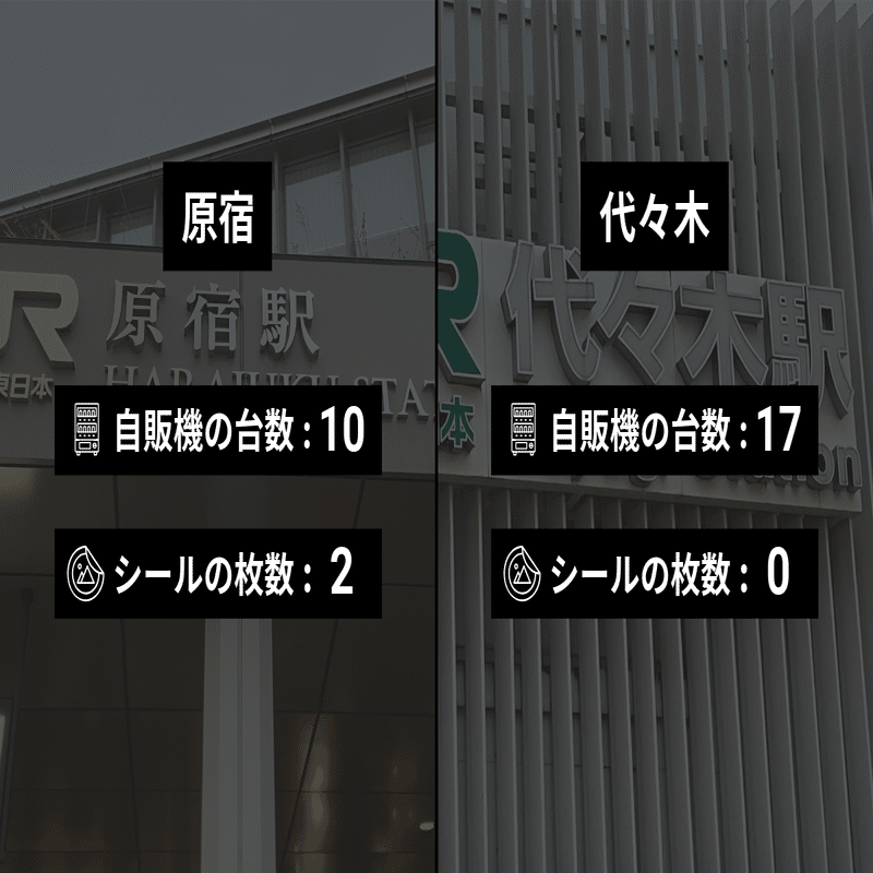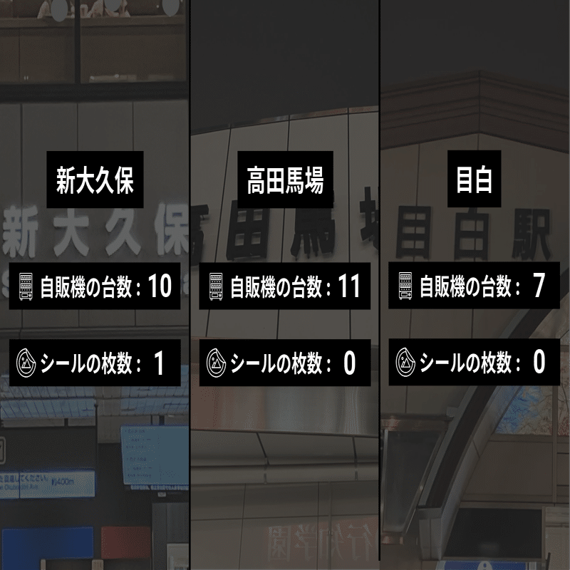 はじめ、大きな駅は自販機が多いから単純にシールの枚数が多いのだろうと思っていた。実際に見てみると、割合も高かったのだ。私生活の中でシールを貼っているという感じがする。