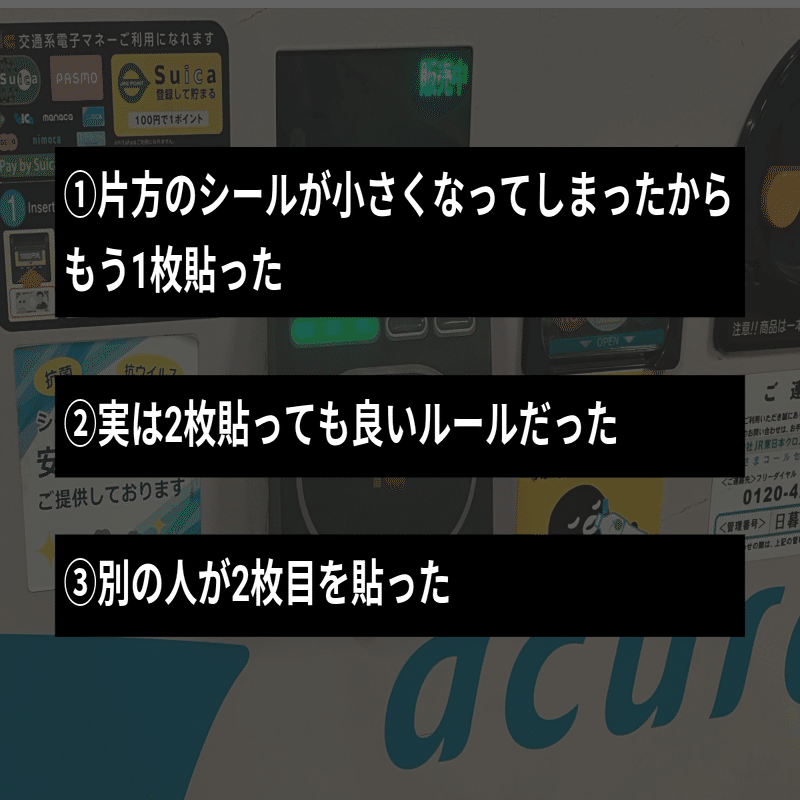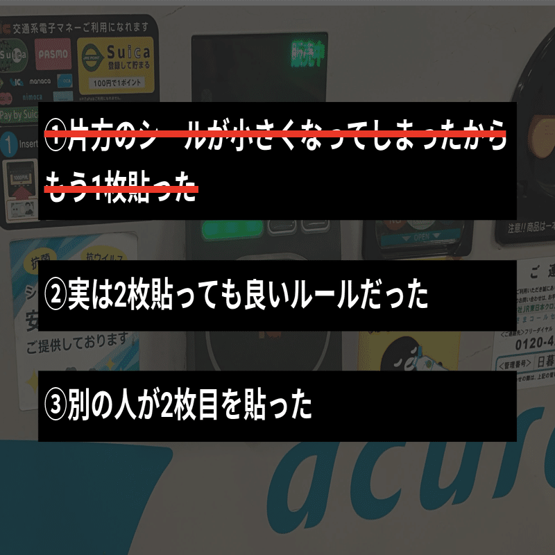 それに自販機の会社も異なっている。となると、自販機の会社がシールを貼っているとも考えにくい。じゃあ誰が貼ってるんだ。
