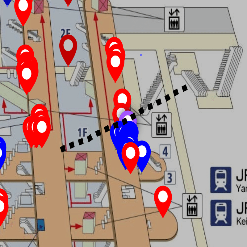渋谷でもそうだったように、シールが貼られている場所には偏りがある。駅の中に、明らかに多い場所とまったくない場所がある。