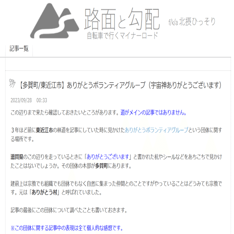 【多賀町/東近江市】ありがとうボランティアグループ(宇宙神ありがとうございます) | 路面と勾配