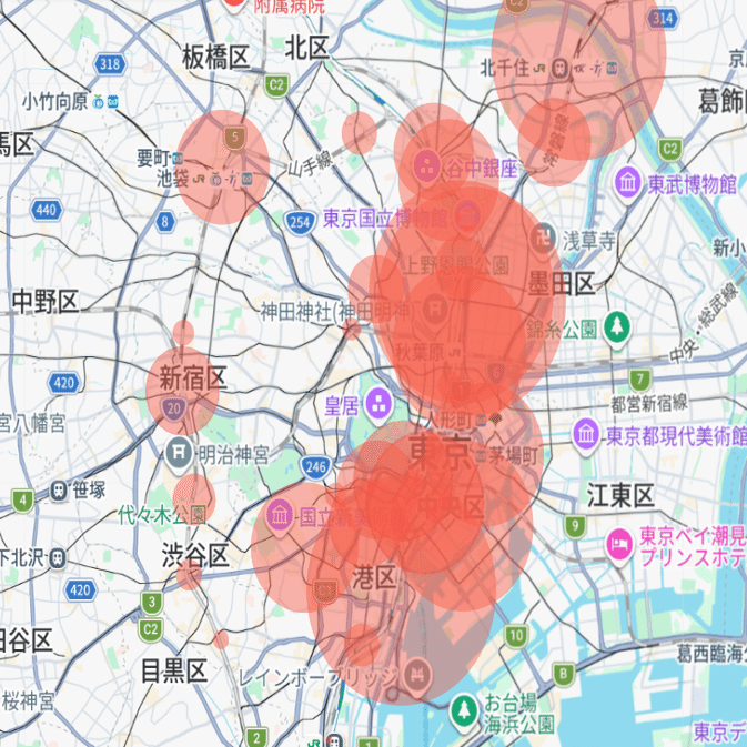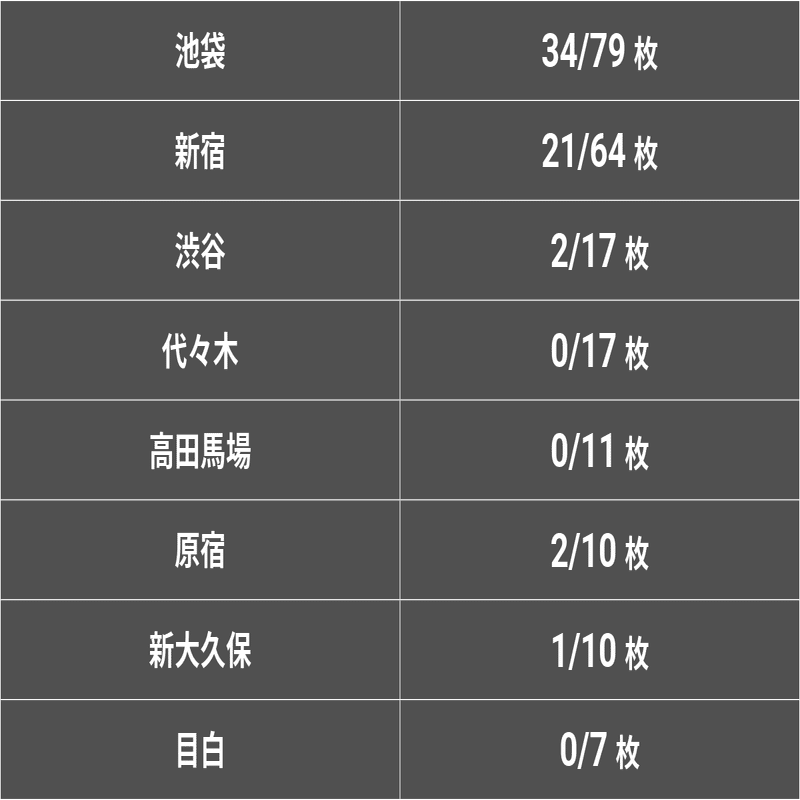 ここで初日は終了。16時ごろに渋谷からスタートして池袋を出たときには22時を過ぎていた。ひとまず手に入れた情報を整理してみる。